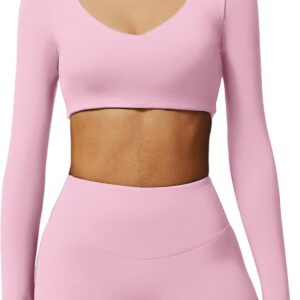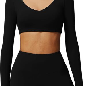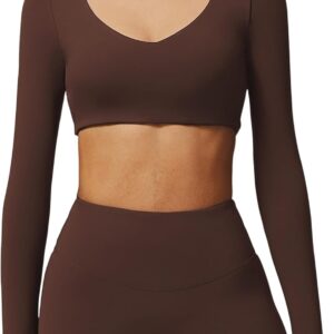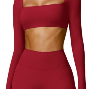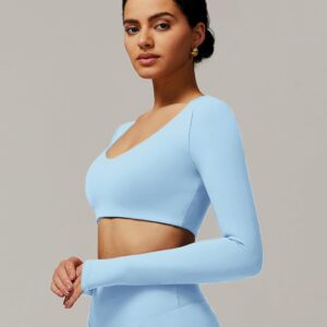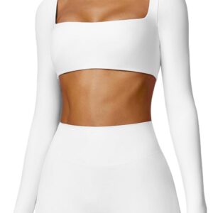 ❤ ❤ Women’s Long Sleeve Crop Top Square Square Neck Workout Crop Top Basic Slim Fit T Shirt❤ ❤