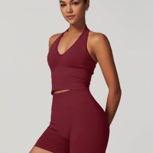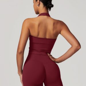 Feature: Halter, Backless, Movable Chest Pads, High Rise, Solid Color, Slim Fit