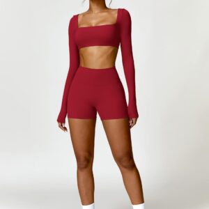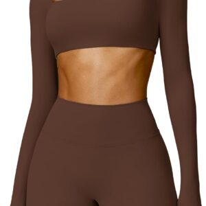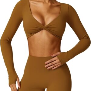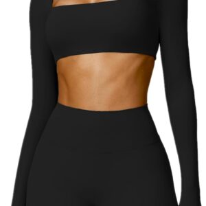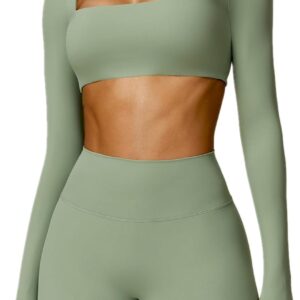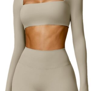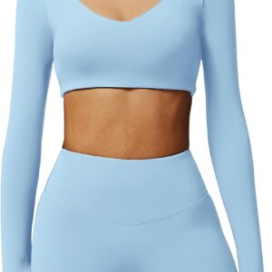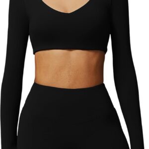 - 【Long Sleeve Crop Tops for Women】2 piece workout sets for women workout crop tops for women, Light-to-medium support, Removable padding with inbuilt bra, Low-cut square neckline, Super-cropped length, 4-way stretch ,Lightweight, silky-feel, Quick-dry. This crop tops for women will help you feel and workout your best. Long sleeves workout crop tops sports shirts fitness activewear, Style with our leggings or shorts for a perfect gym fit.