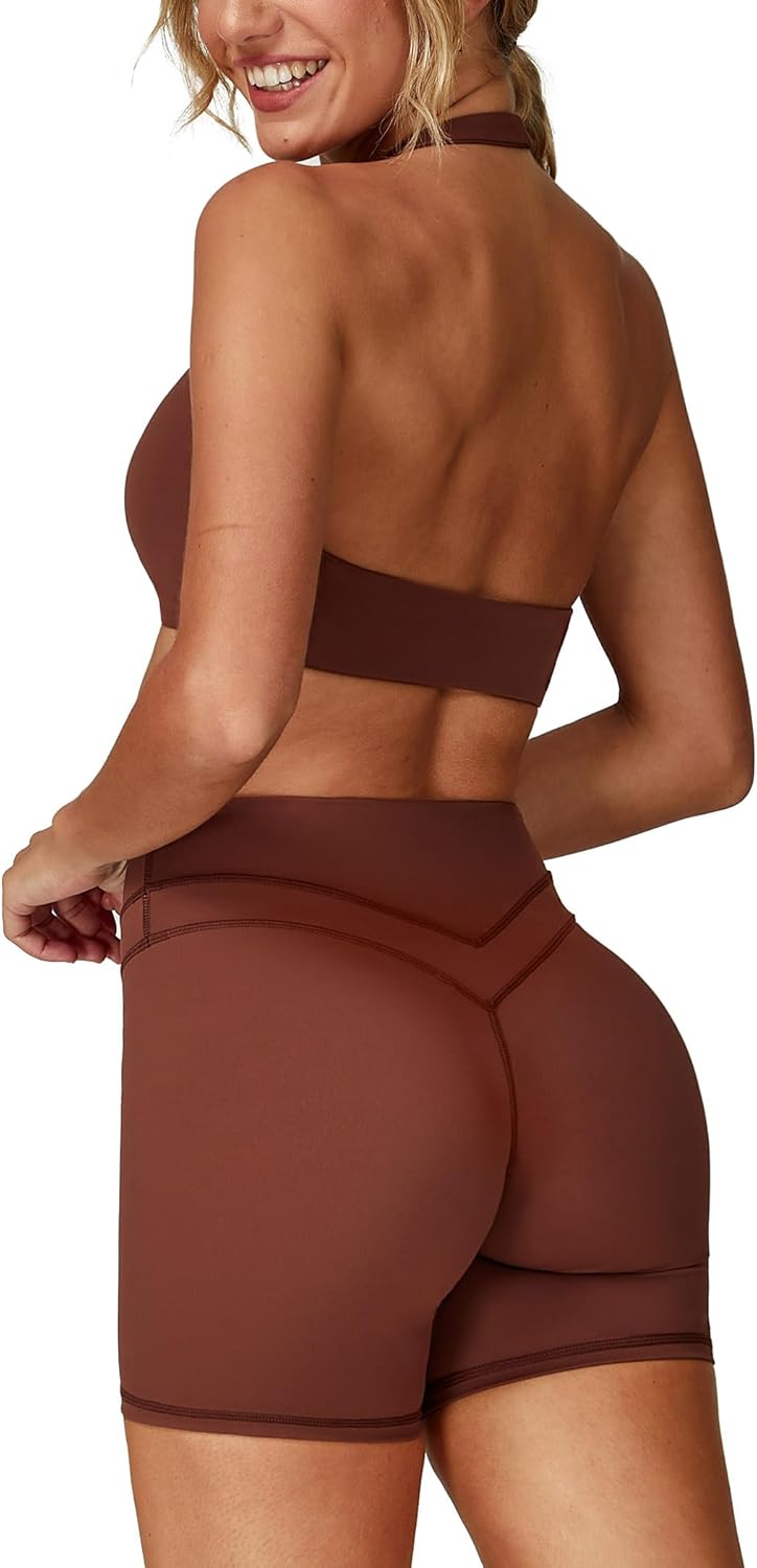 - Backless Halter Sports Bra: Womens halter sports bra padded low back yoga bar workout crop top with built in bra,open back sexy halter sports bra for women, backless sleeveless workout tops,womens workout sets, 2 piece workout sets for women, gym sets woman, two piece gym sets for women.