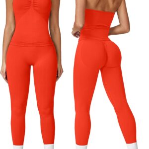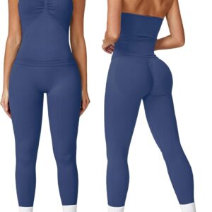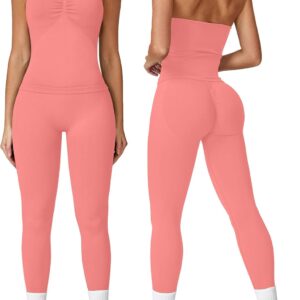ABOCIW Workout Sets for Women Seamless Scunch Butt Lifting Impact Leggings Longline Strappy Top 2 Piece Gym Outfits