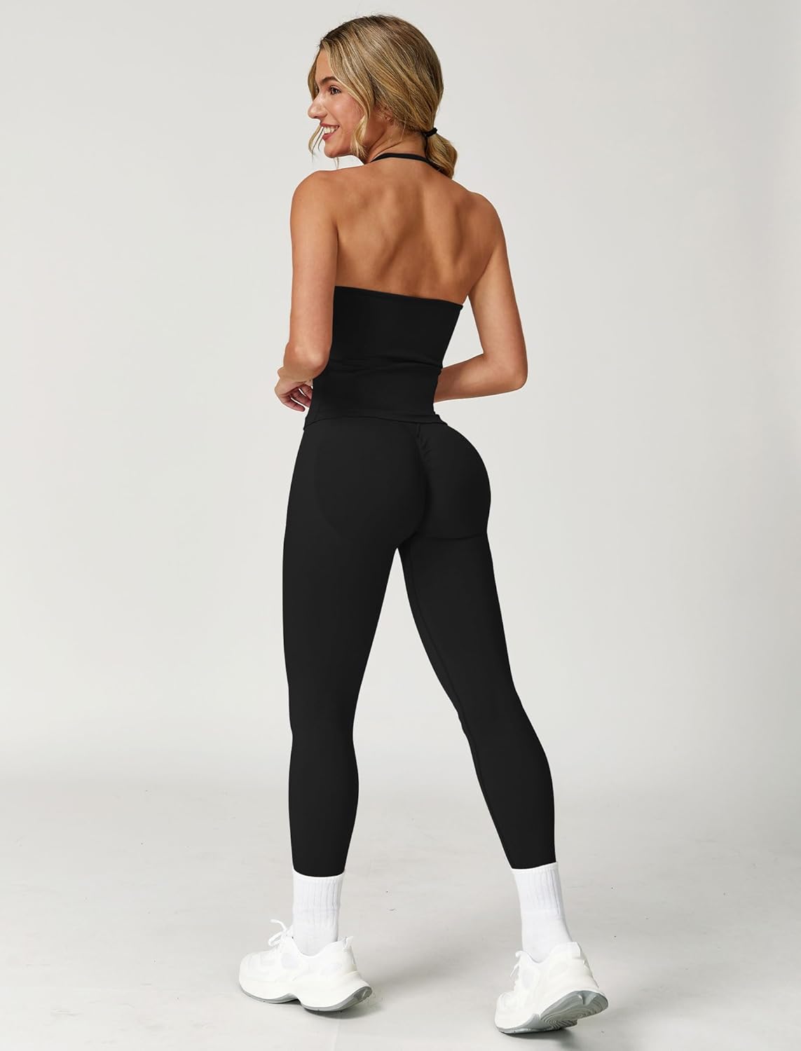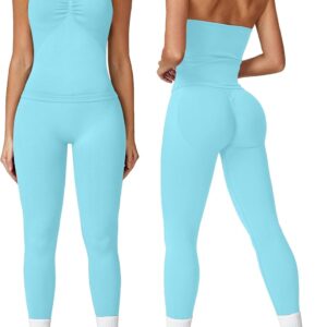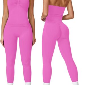 ABOCIW Workout Sets for Women Seamless Scunch Butt Lifting Impact Leggings Longline Strappy Top 2 Piece Gym Outfits quantity