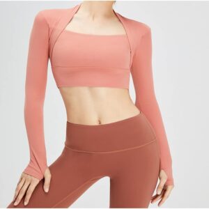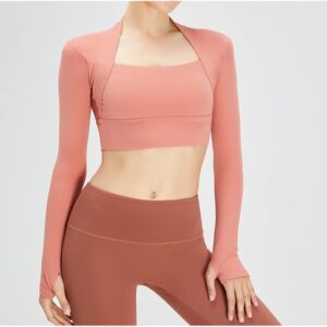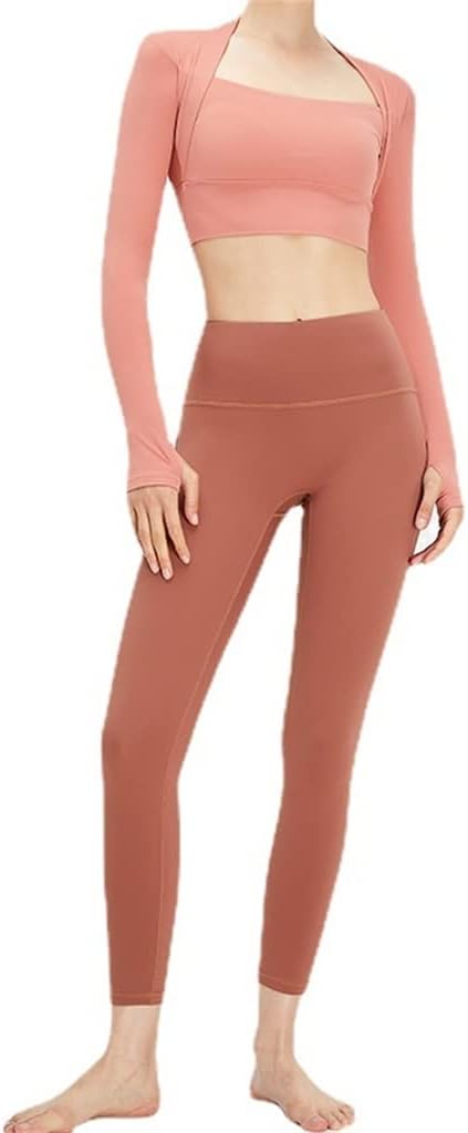 AFPSDLFJDLS Women’s Nude Yoga Clothes Plus Velvet Tight Outdoor Comfortable Fake Two-piece Gym Sports Suit