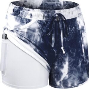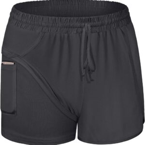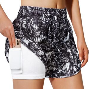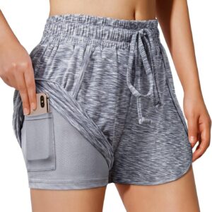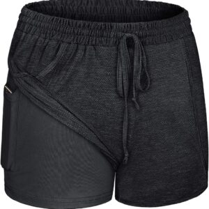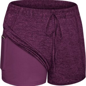 BLEVONH Women Yoga Running Shorts 2 in 1 Workout Athletic Shorts with Pockets S-3XL