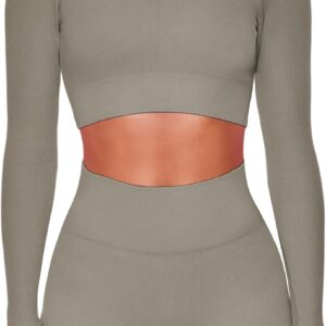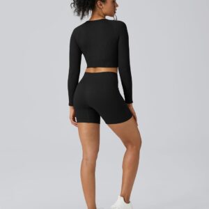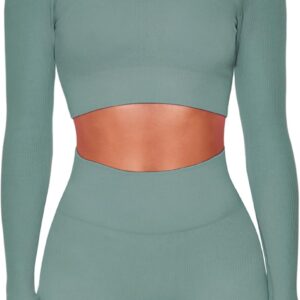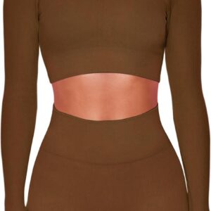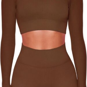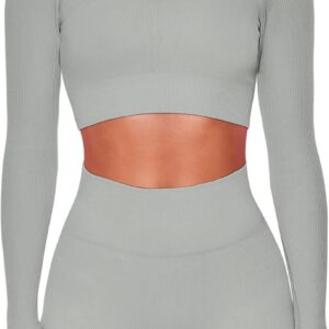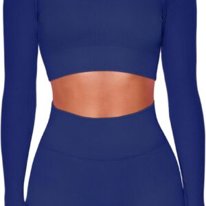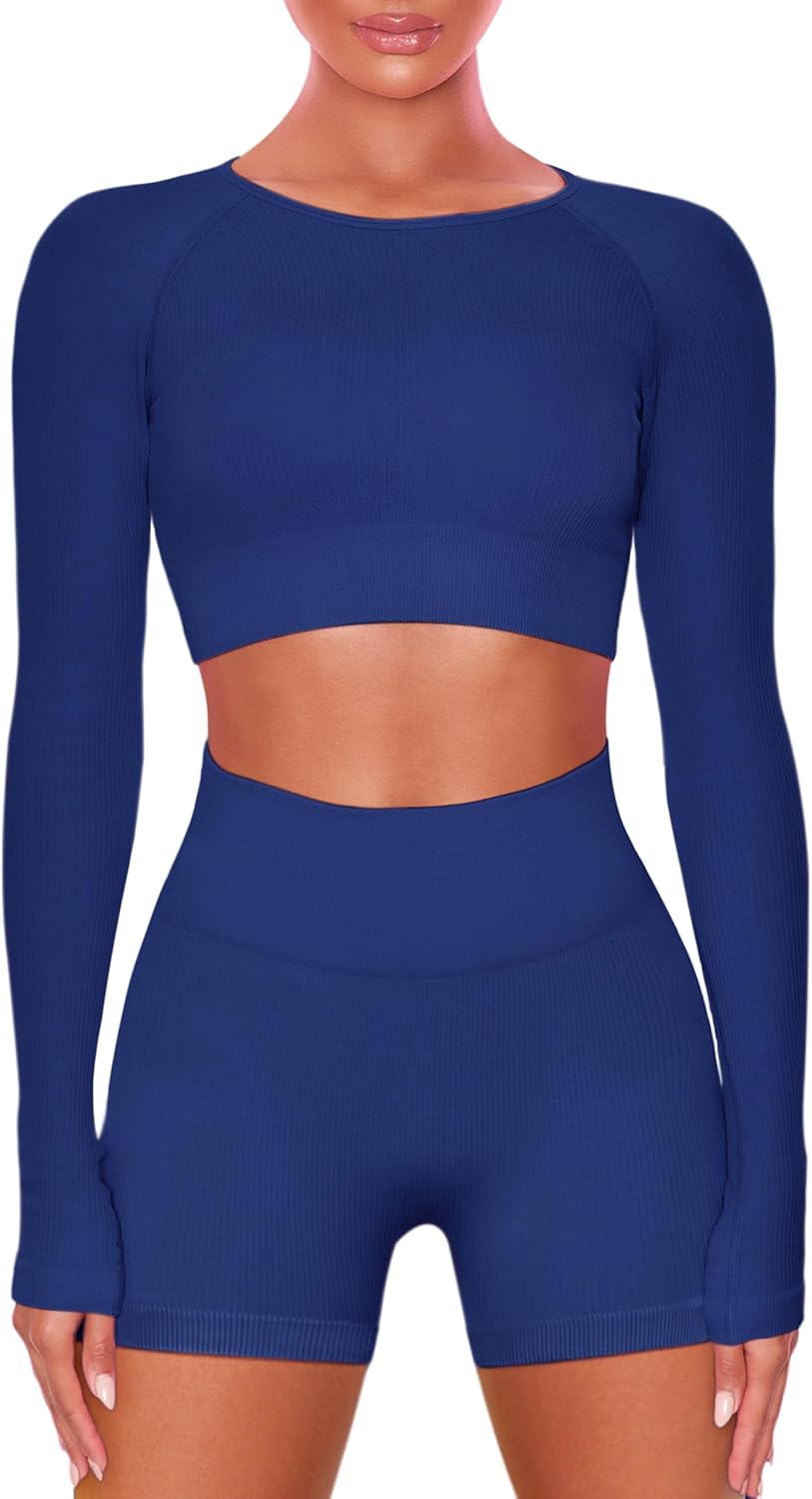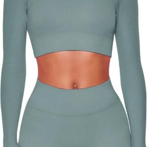 Buttergene Women Workout Sets 2 Pieces Long Sleeve Yoga Outfits Gym Clothes Seamless Ribbed Crop Top High Waist Leggings