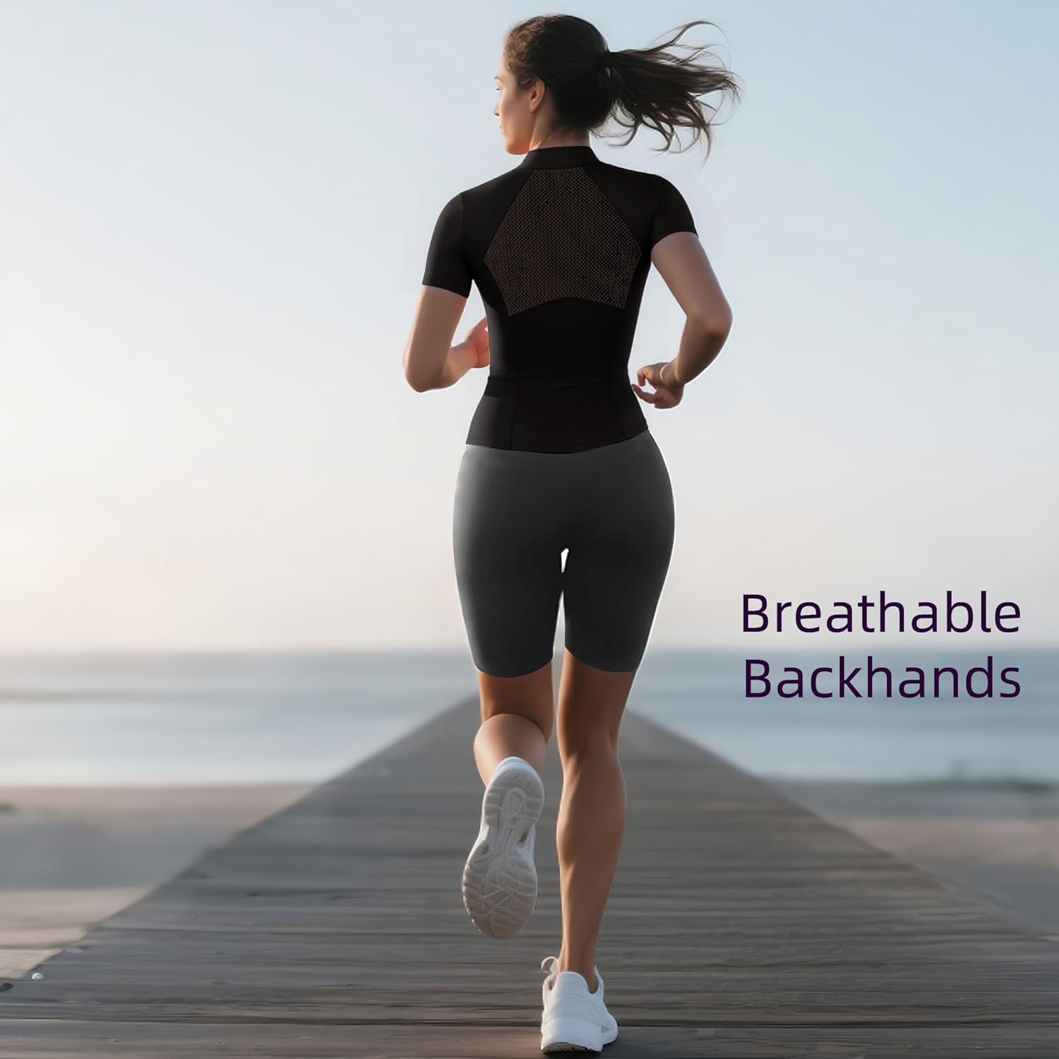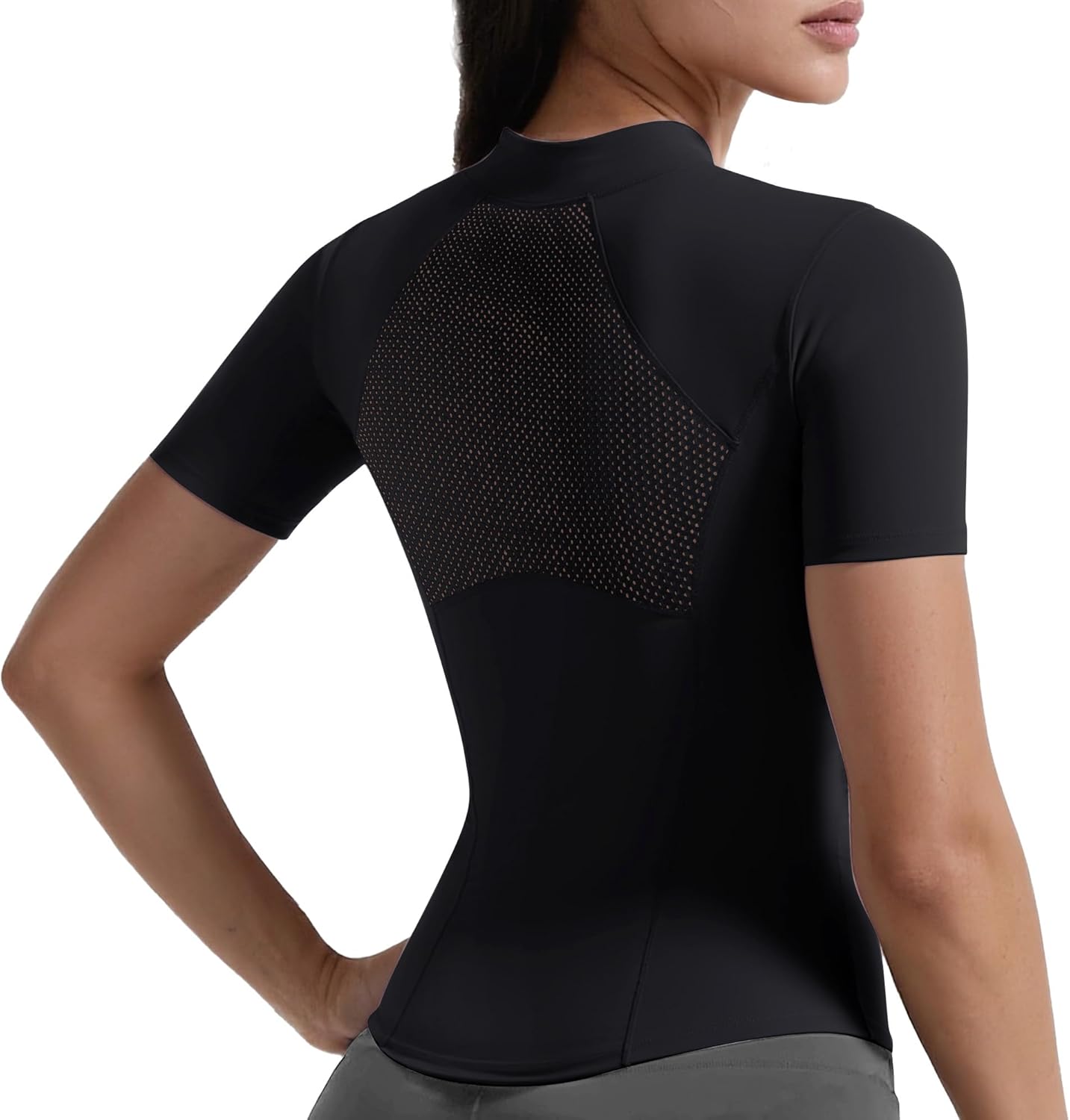 Clbort Women’s Workout Shirts Mesh Breathable Tops Athletic Compression Fit T-Shirt Short Sleeve Gym Tees Quick-Dry Shirts