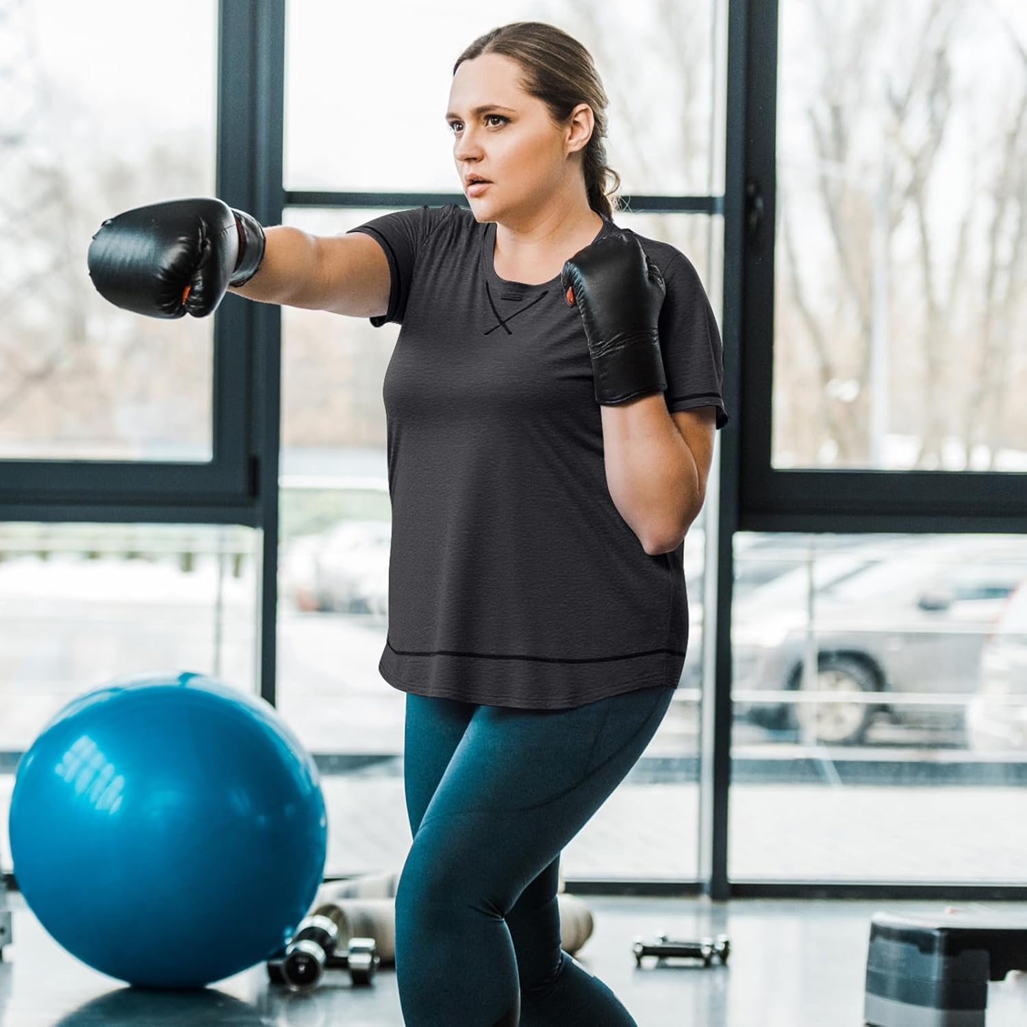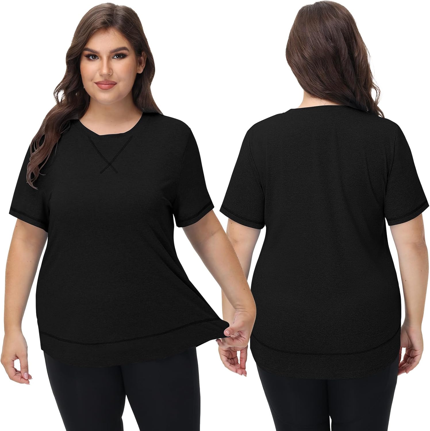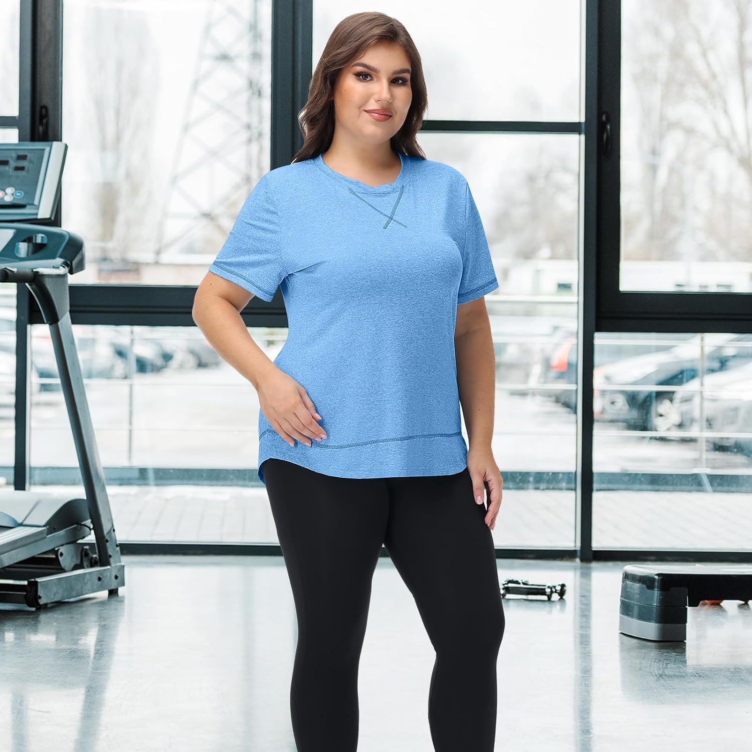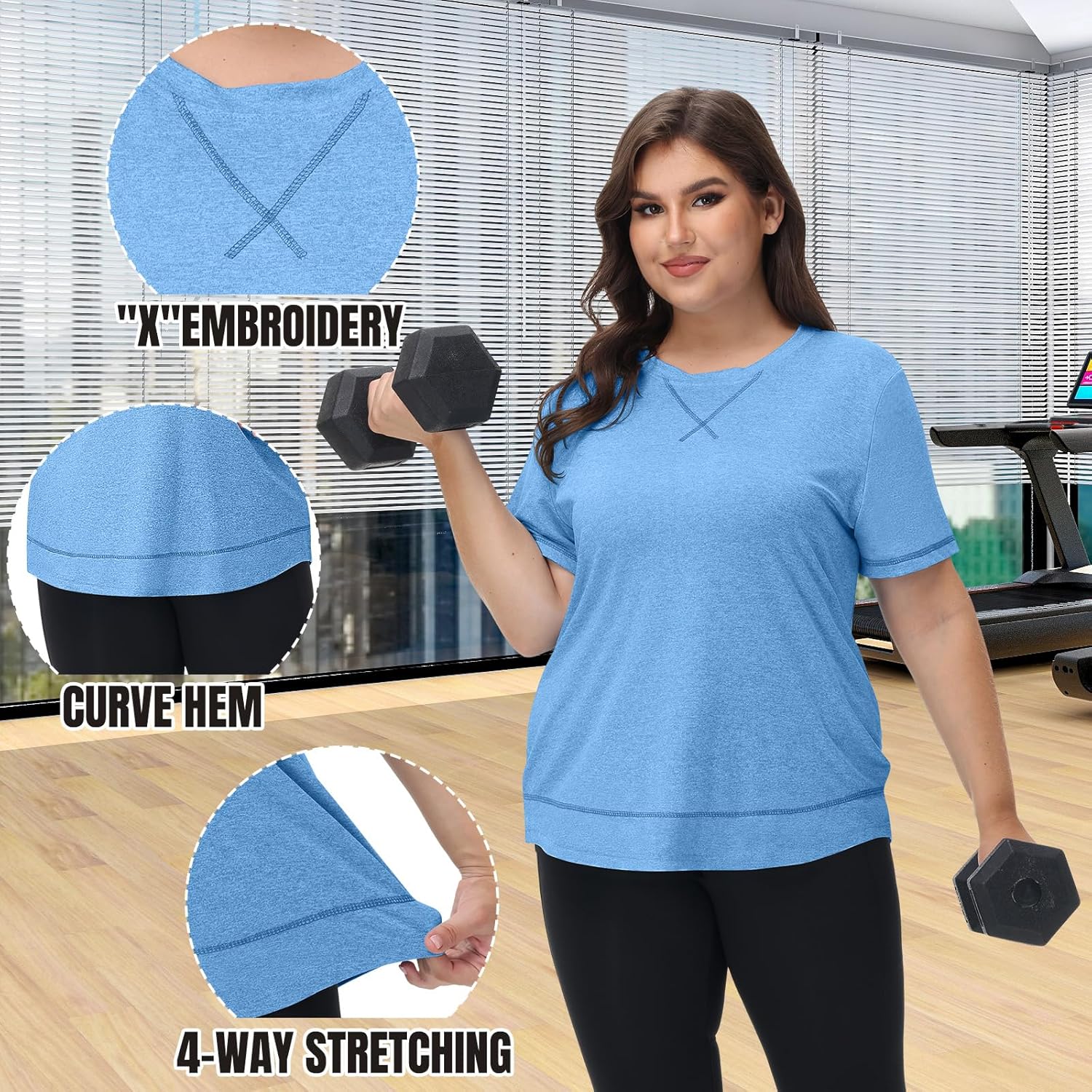 Coume 3 Pack Women’s Plus Size Workout Tops Short Sleeve Loose Fit Crew Neck Shirts Quick Dry Gym Clothes