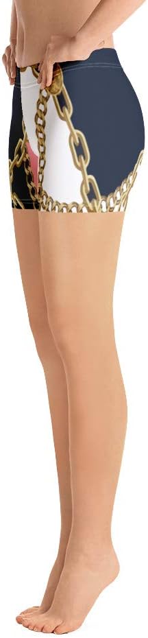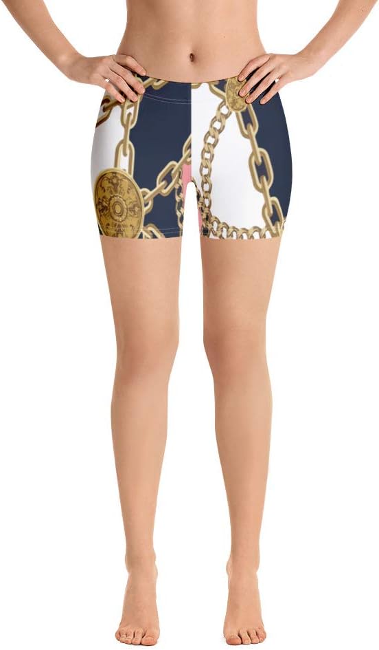 Edwin Vonholy Gym Workout Yoga Shorts for Women Girls White Mosaic Gold Chain Pants