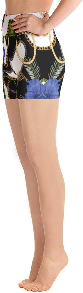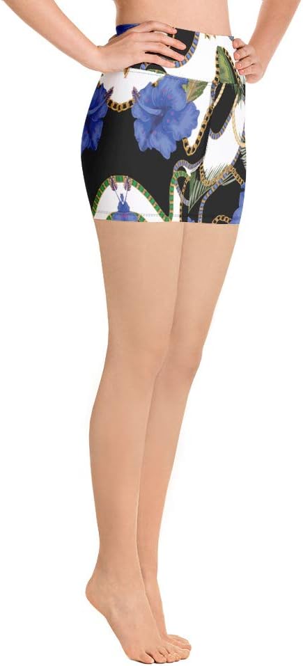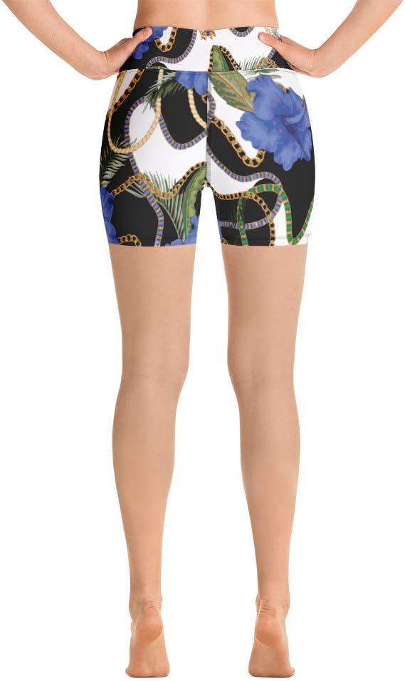 Edwin Vonholy Yoga Shorts for Women Girls High Waisted Pants Blue Flower Fair White