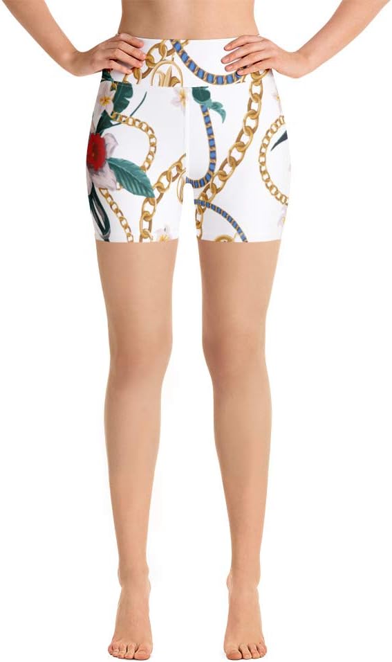 Edwin Vonholy Yoga Shorts for Women Girls High Waisted Pants Flowery Chain White