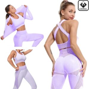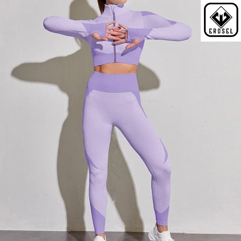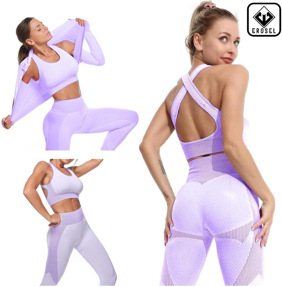 EROSEL 3 Piece Workout Sets for Women\u2013Seamless Workout Sets with Jacket, Sports Bra & High-Waisted Leggings Women\u2019s Gym Sets