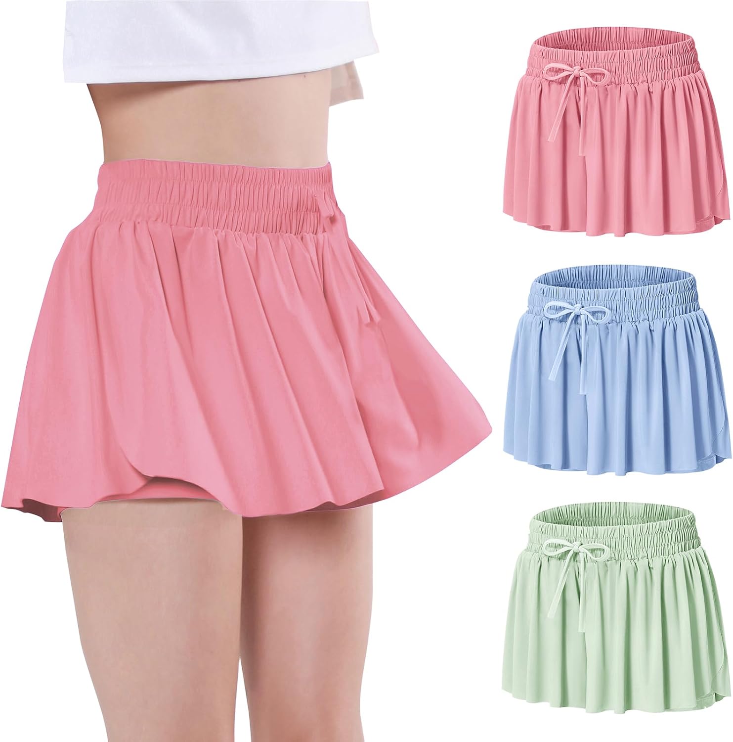 EXARUS Girls Butterfly Shorts Flowy Dance Skirt Cheer Skorts Athletic Tween Clothes Teen Preppy Outfits Flutter Kids
