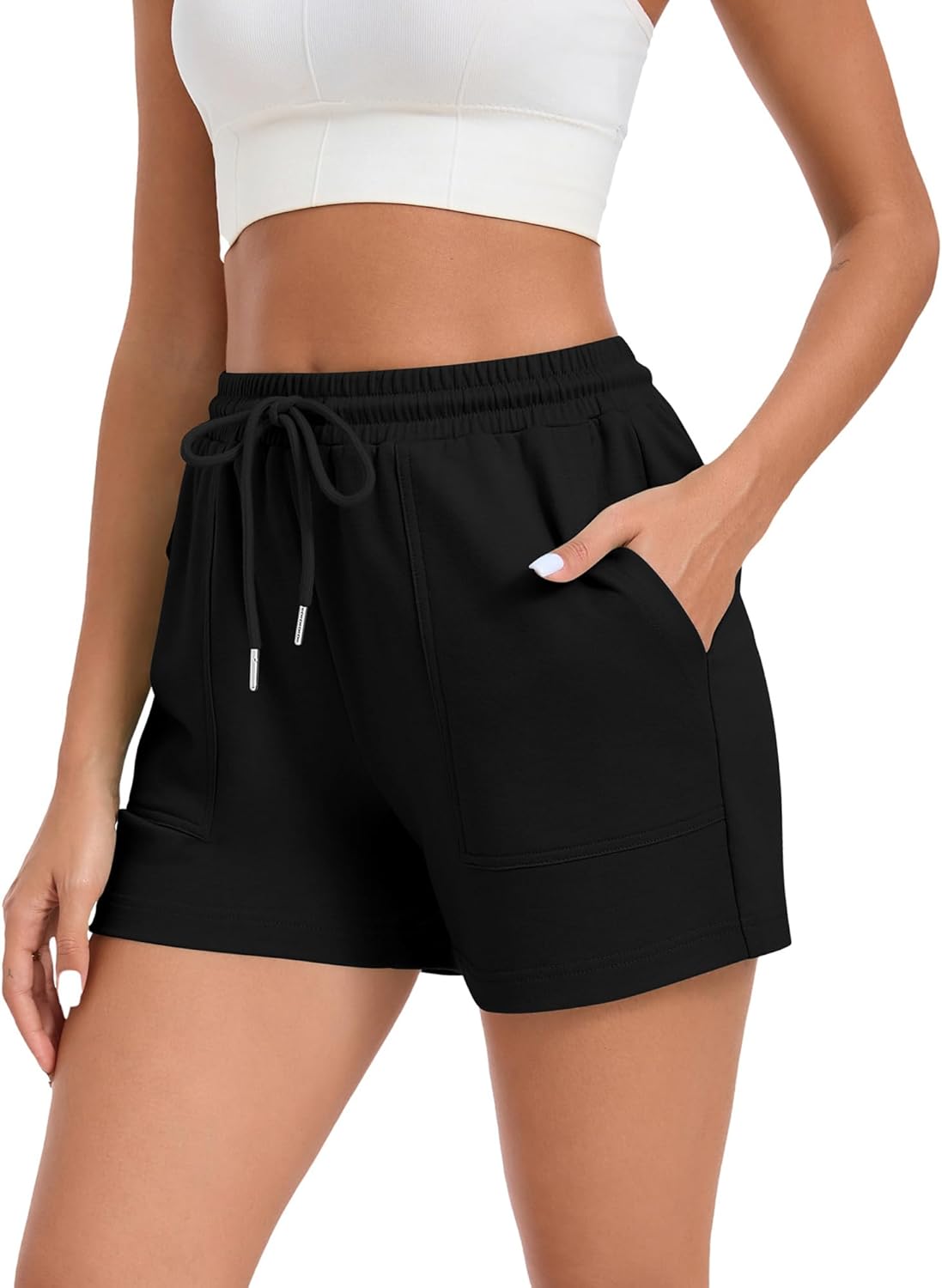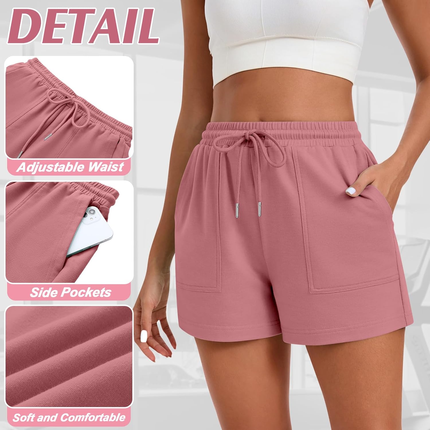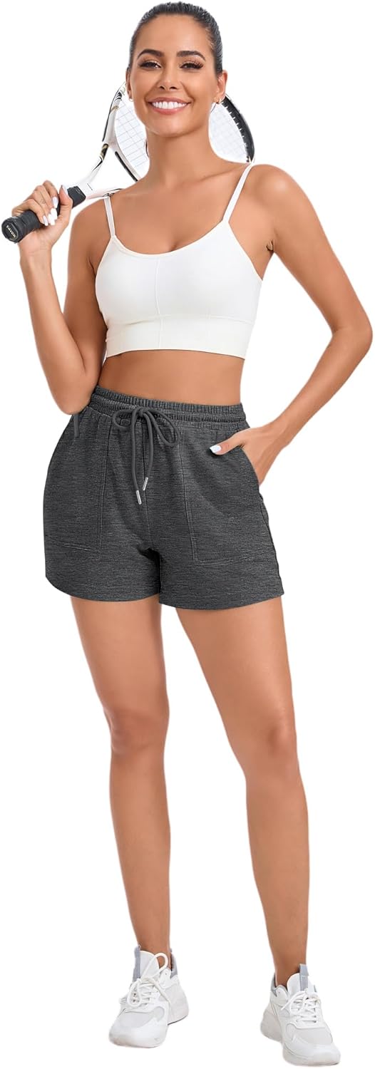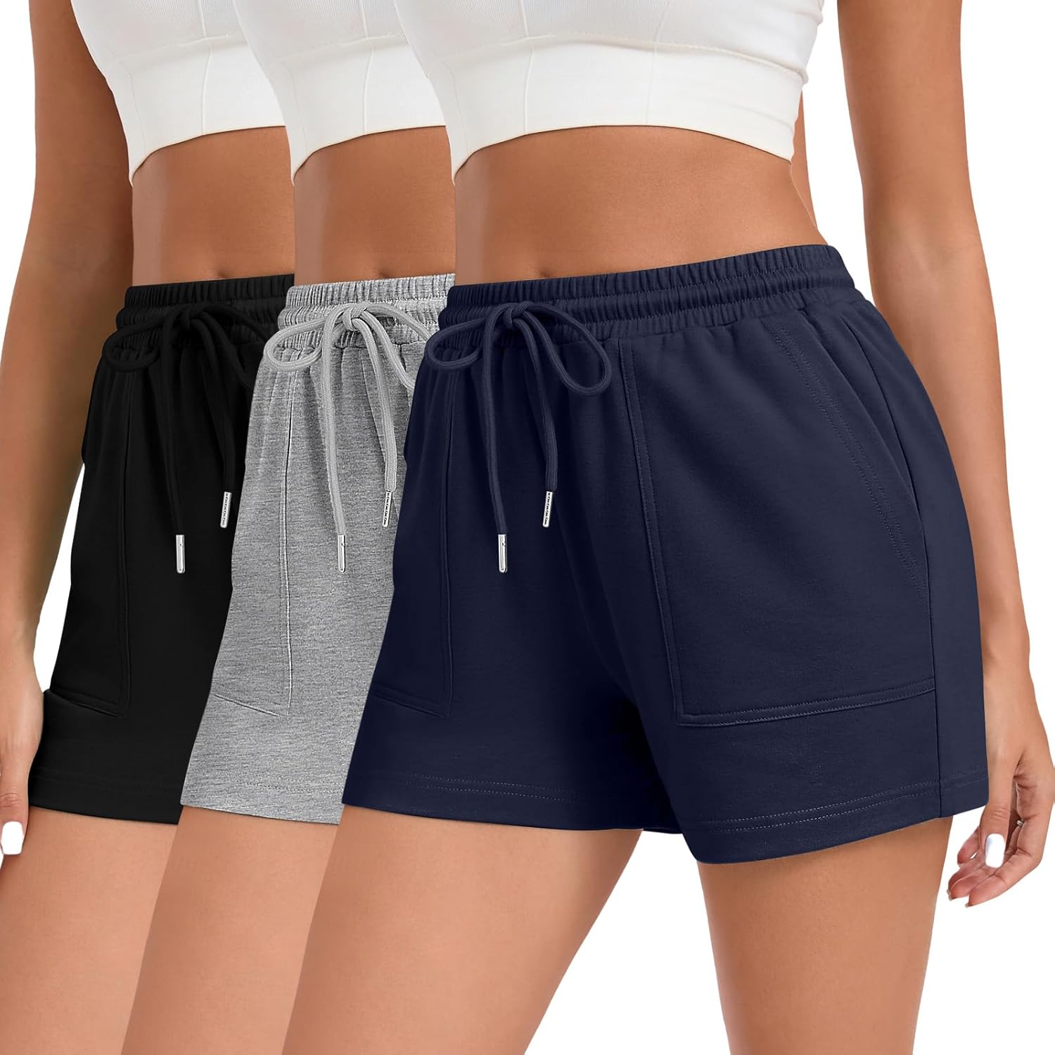 Locoowai 3 Pack Women’s Sweat Shorts Lounge Casual with Pockets Drawstring Gym Athletic Shorts High Waist Summer Clothes