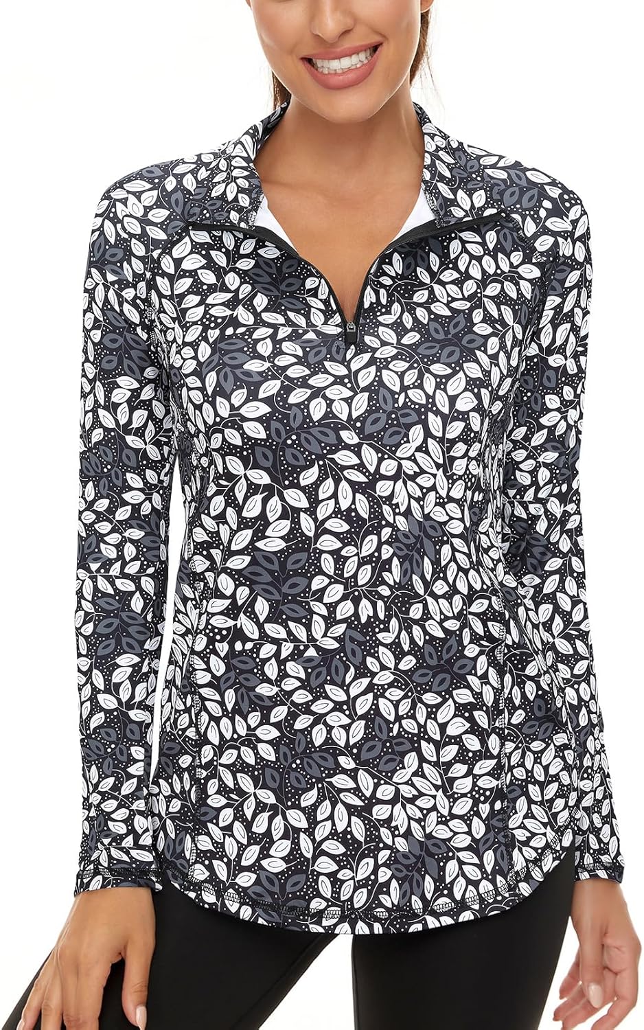 LURANEE Womens UPF 50+ Long Sleeve 1\/4 Zip Pullover Athletic Hiking Running Workout Tops quantity