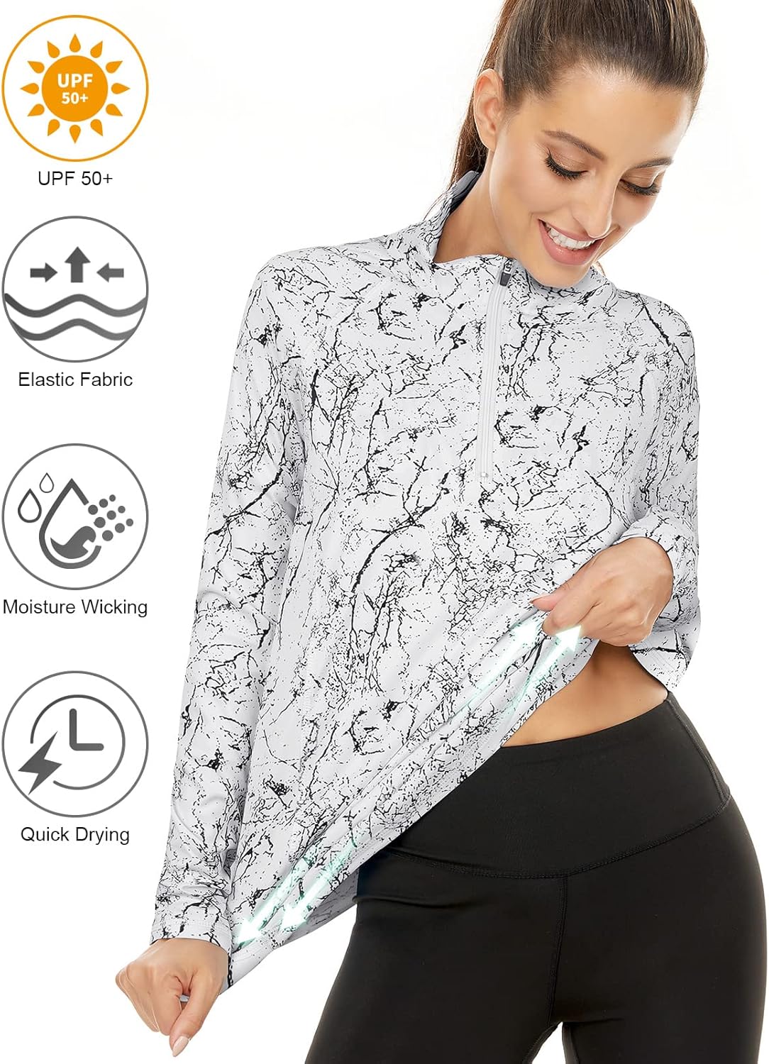 LURANEE Womens UPF 50+ Long Sleeve 1\/4 Zip Pullover Athletic Hiking Running Workout Tops