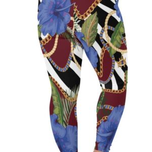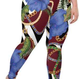Plus Size Leggings for Women Girls Blue Flowery Frost Maroon White Yoga Pants