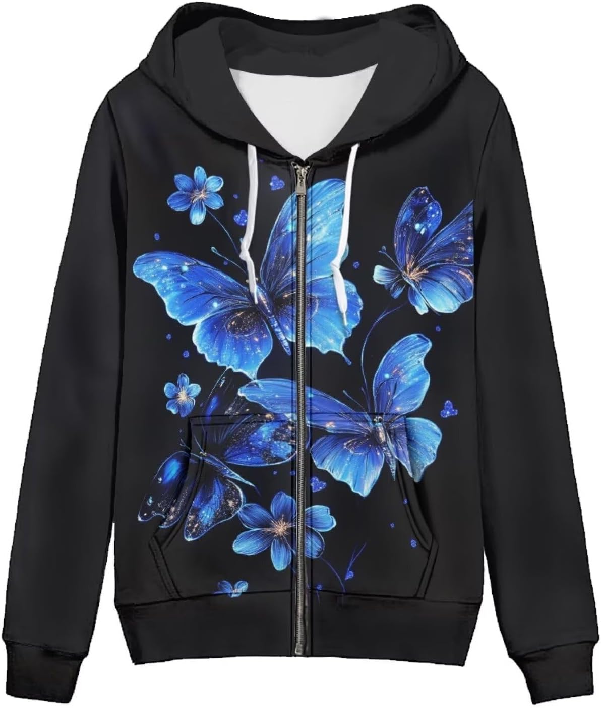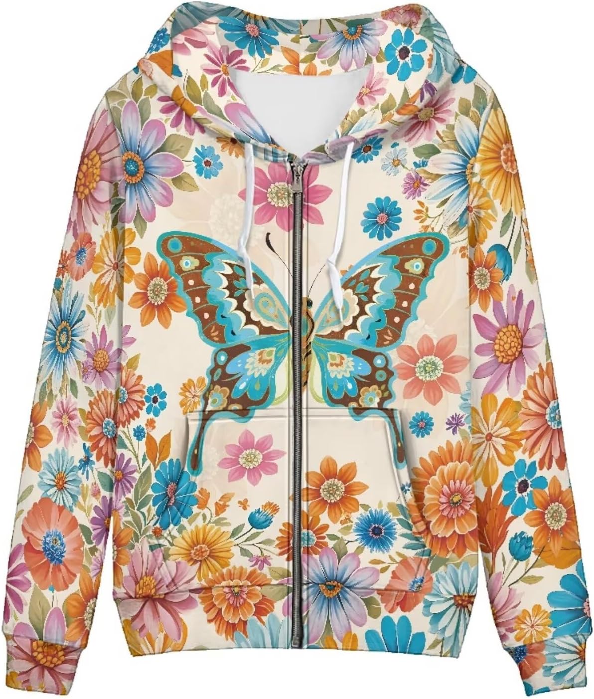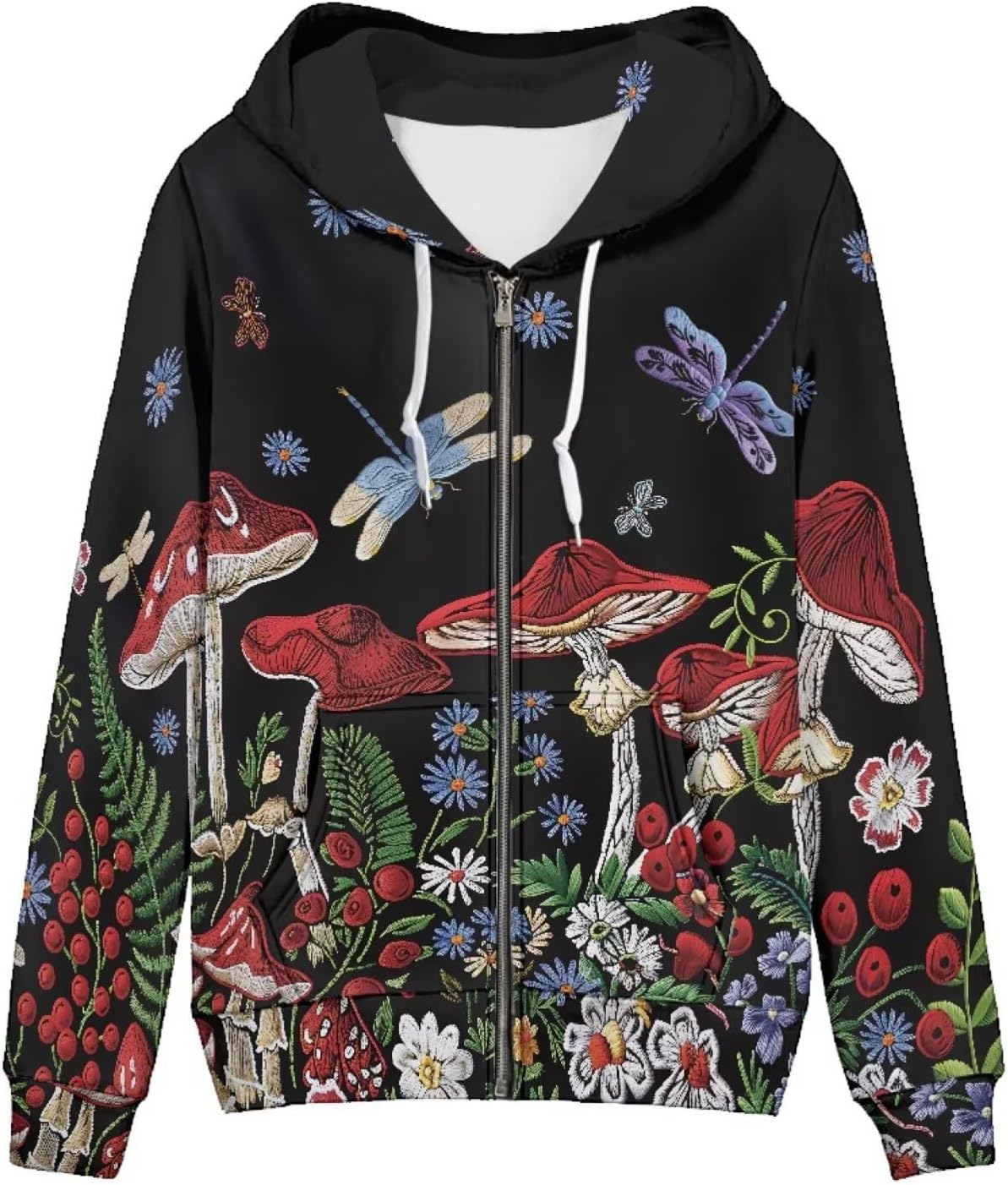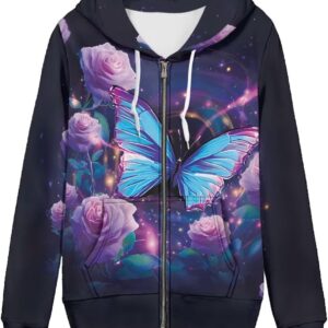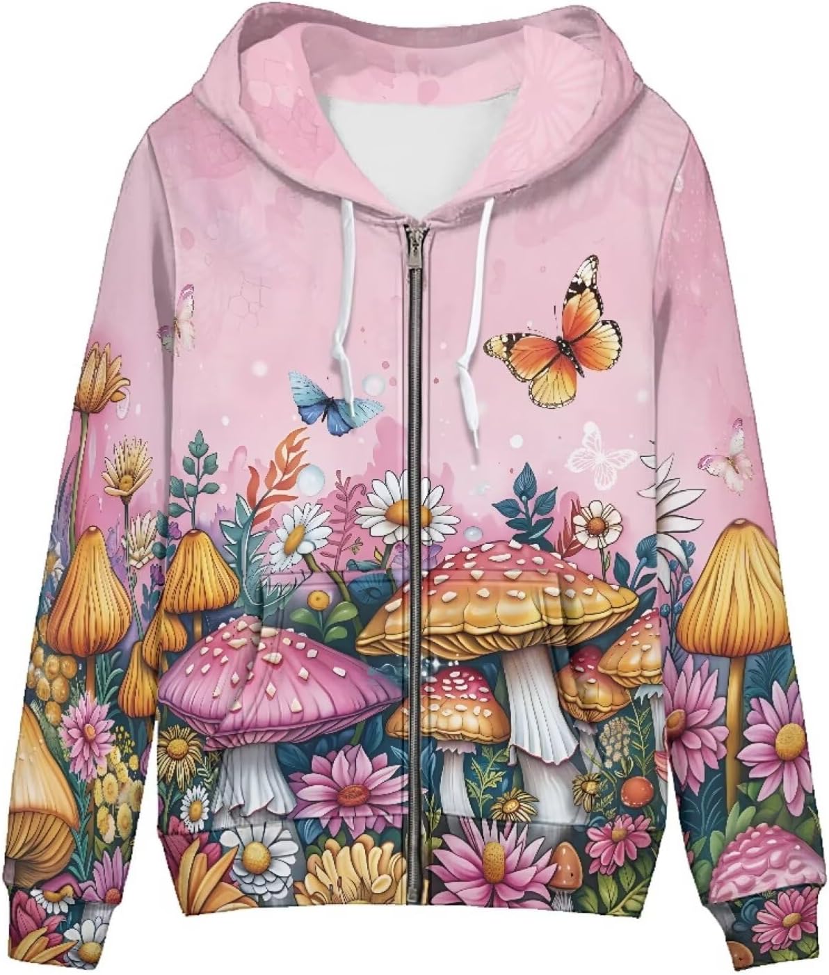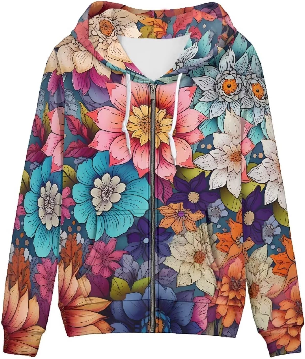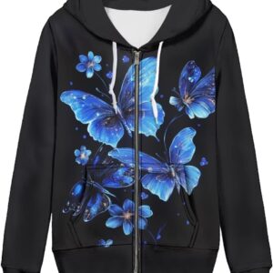 Pointodoor Women’s Zip up Oversized Sweatshirts Long Sleeve Hooded Jacket Casual Zipper Tops with Pockets