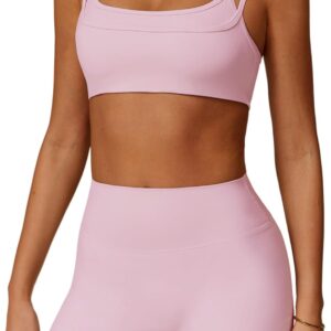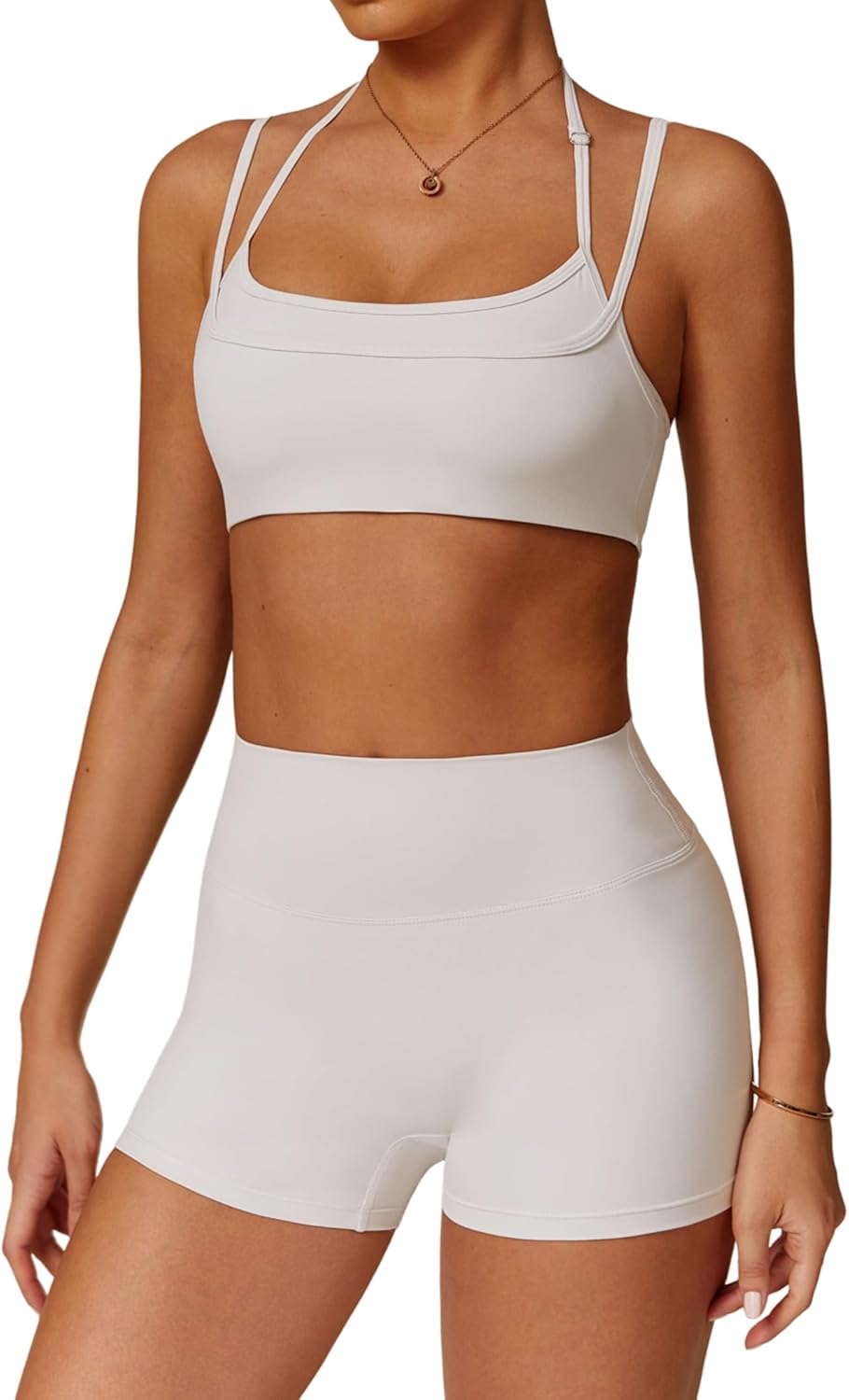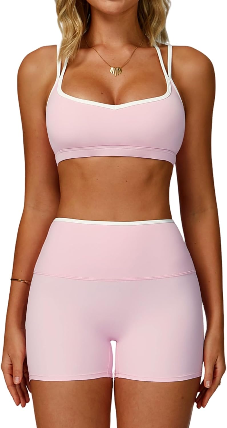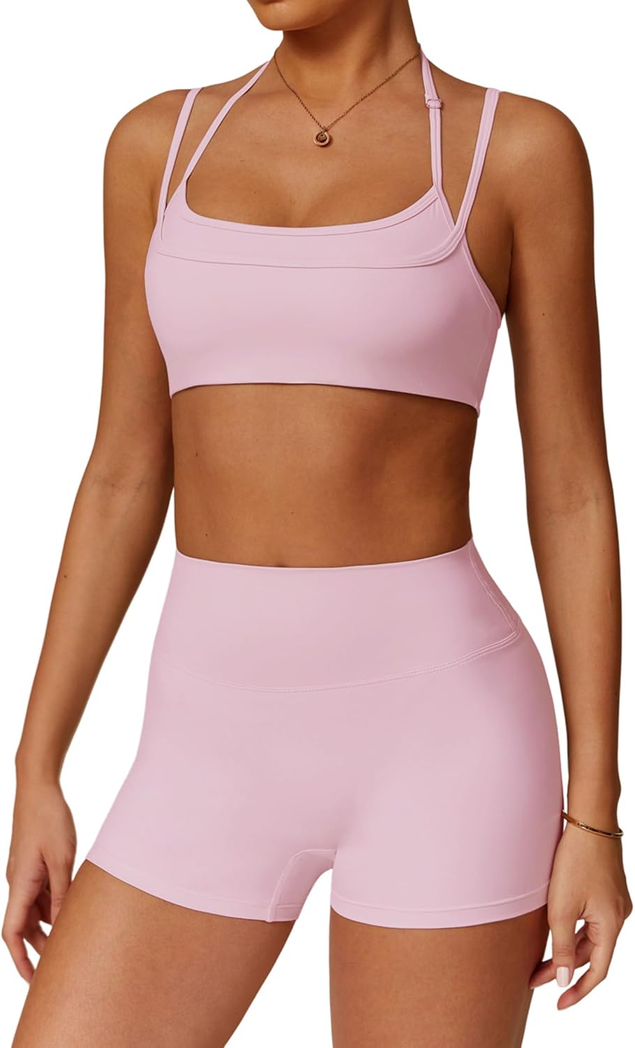 QBGJTD Two Piece Workout Sets For Women Sports Bra Matching High Waist Scrunch Butt Shorts Gym Yoga Athletic Clothes