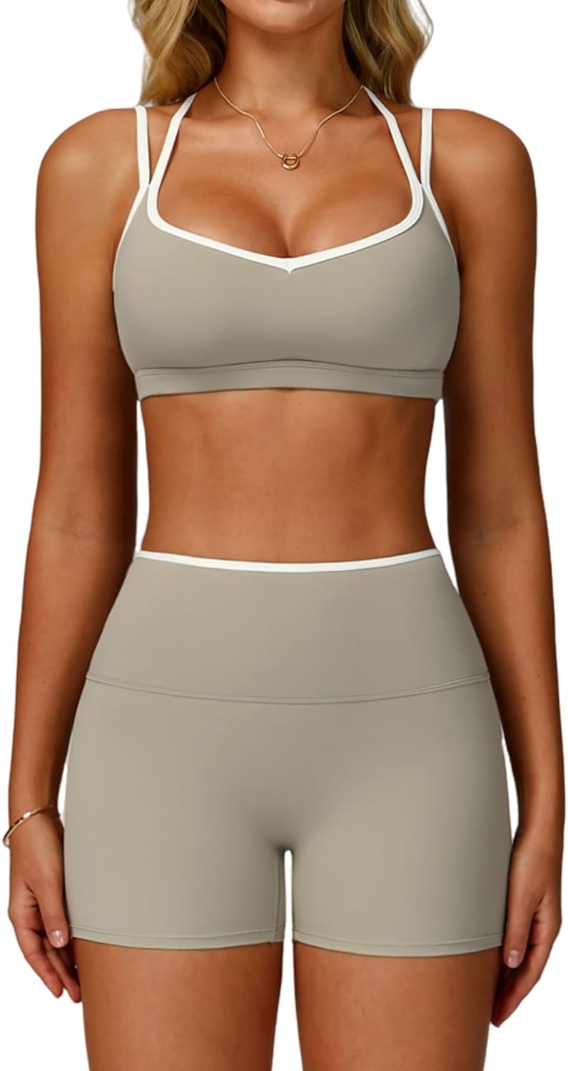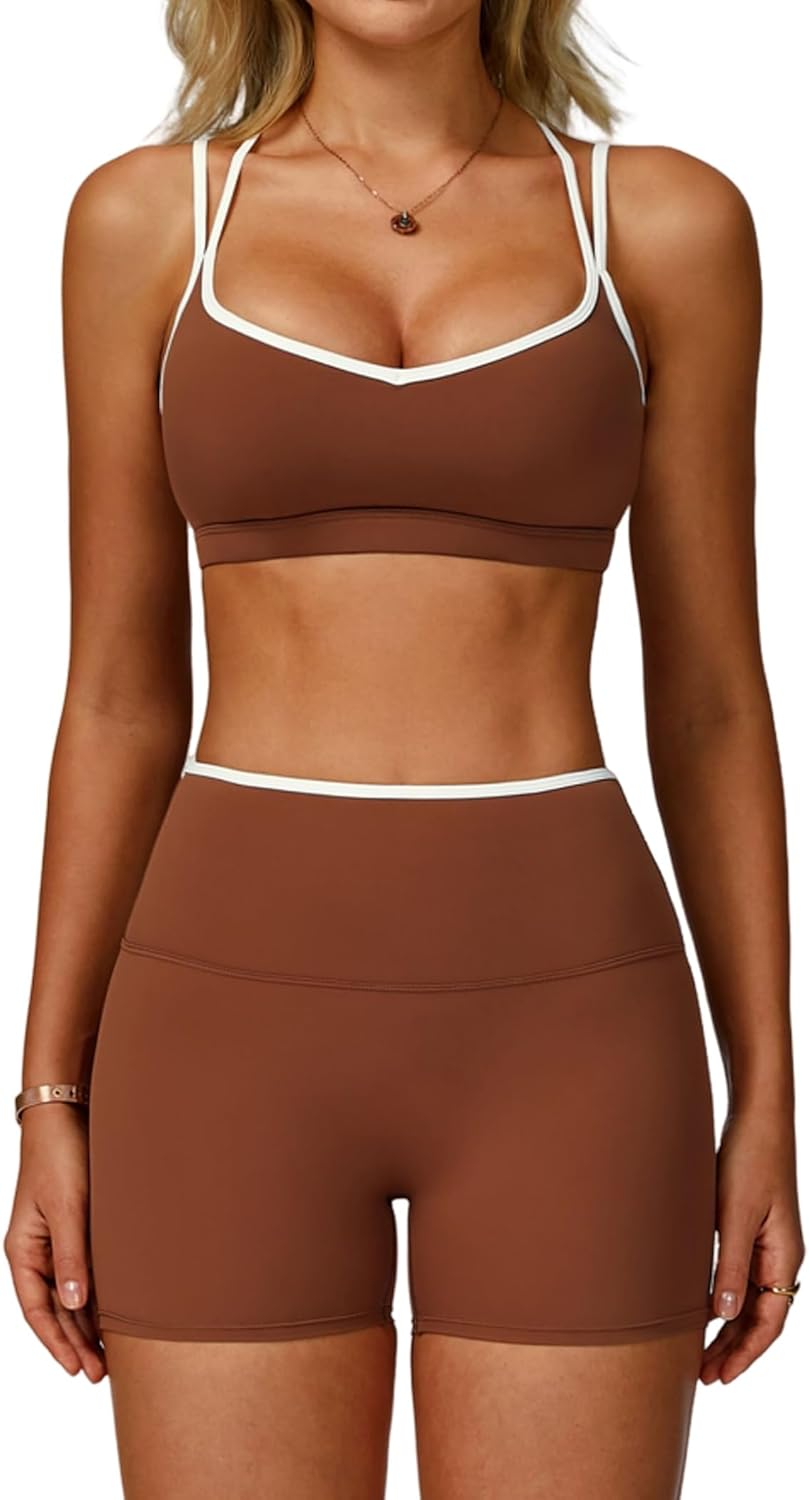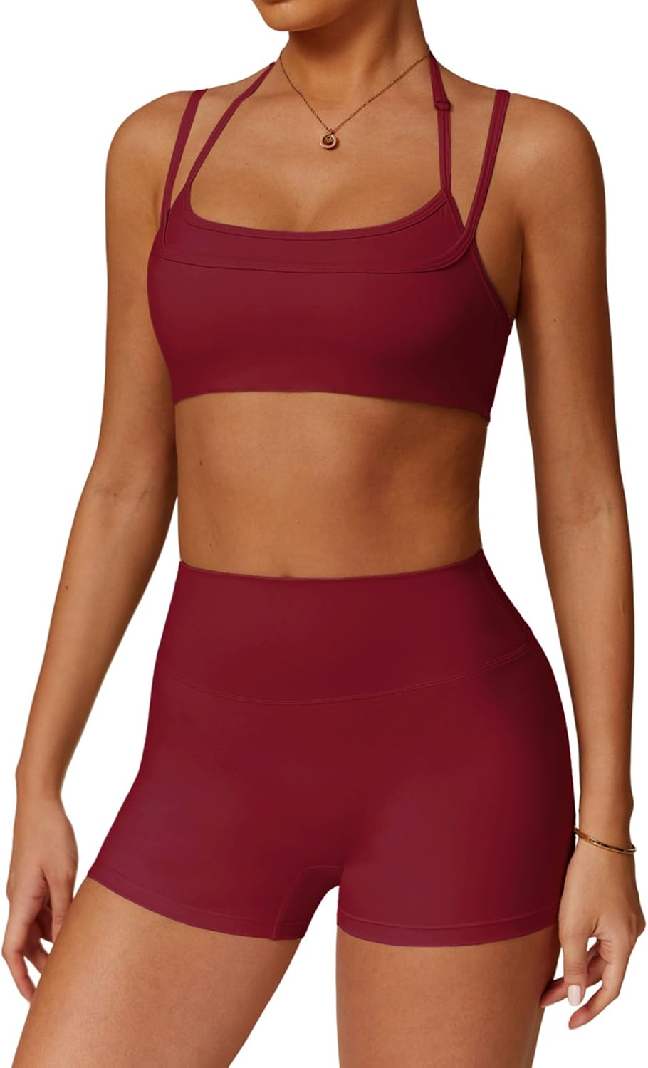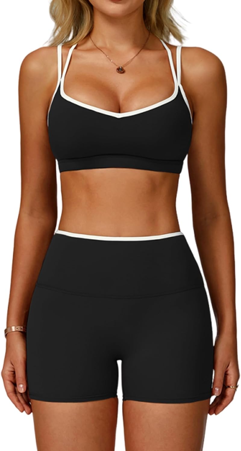QBGJTD Two Piece Workout Sets For Women Sports Bra Matching High Waist Scrunch Butt Shorts Gym Yoga Athletic Clothes