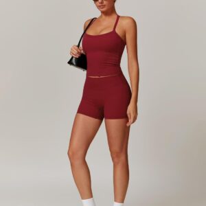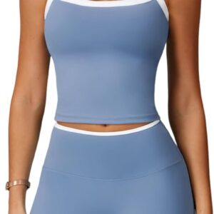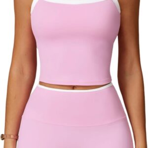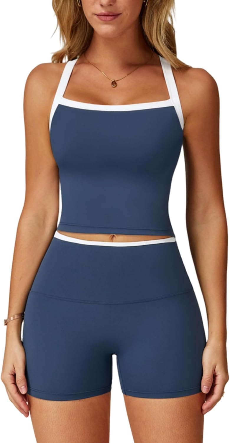 QBGJTD Two Piece Workout Sets For Women Tank Top Matching High Waist Booty Lifting Shorts Gym Yoga Active Wear Outfits