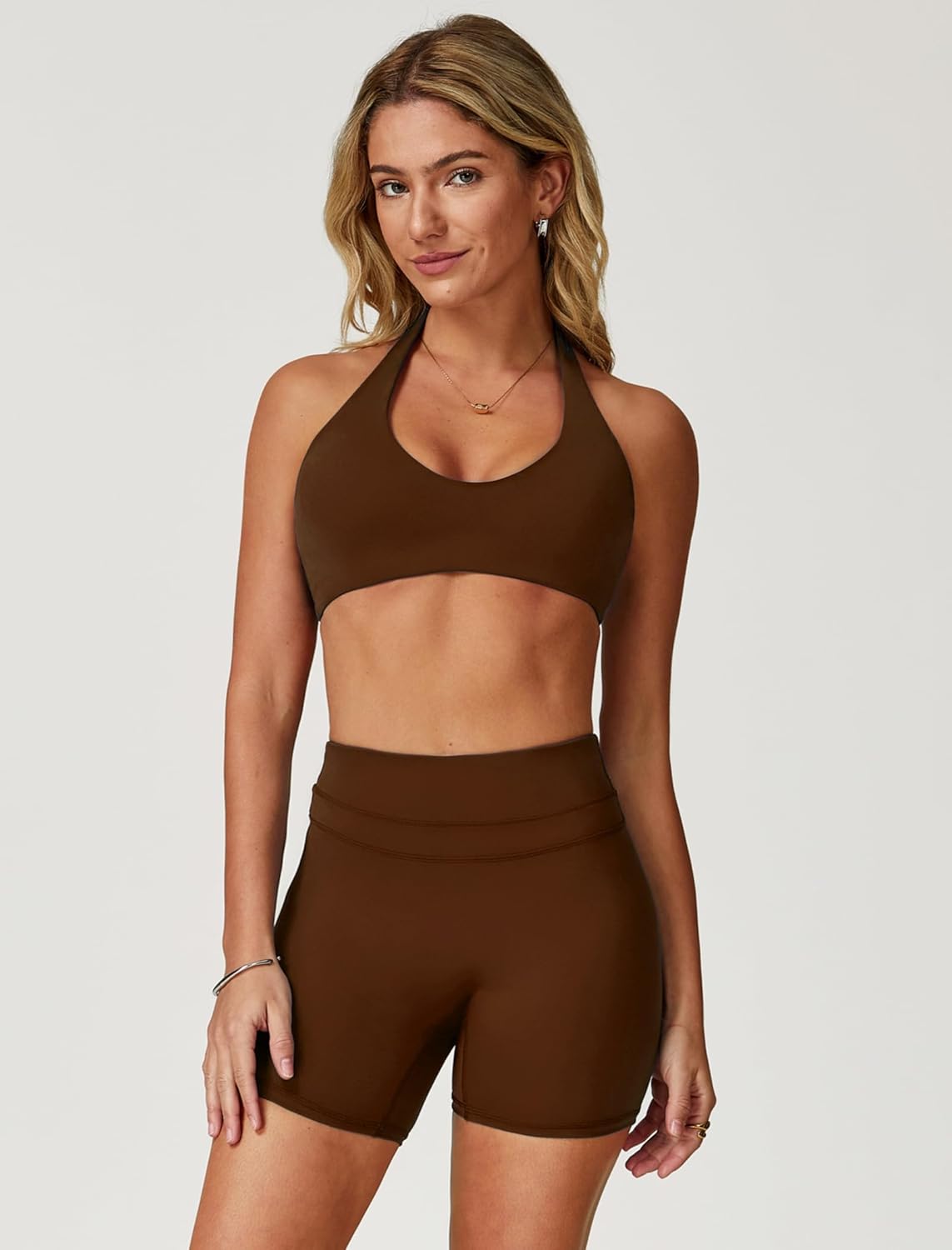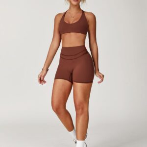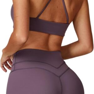 QBGJTD Women 2 Piece Workout Back Sets Sports Bras Matching High Waist Booty Lifting Shorts Gym Yoga Jogger Wear Outfits
