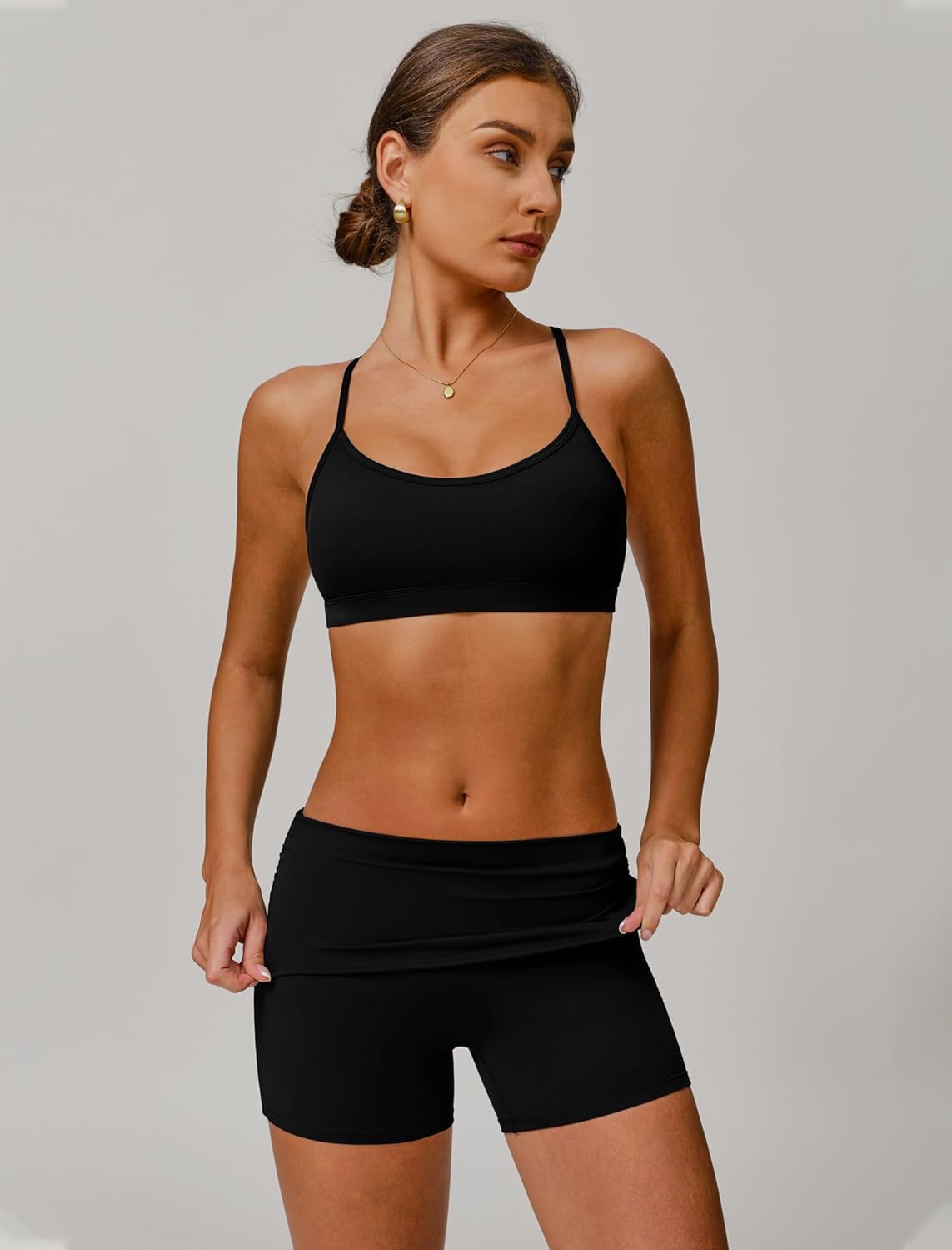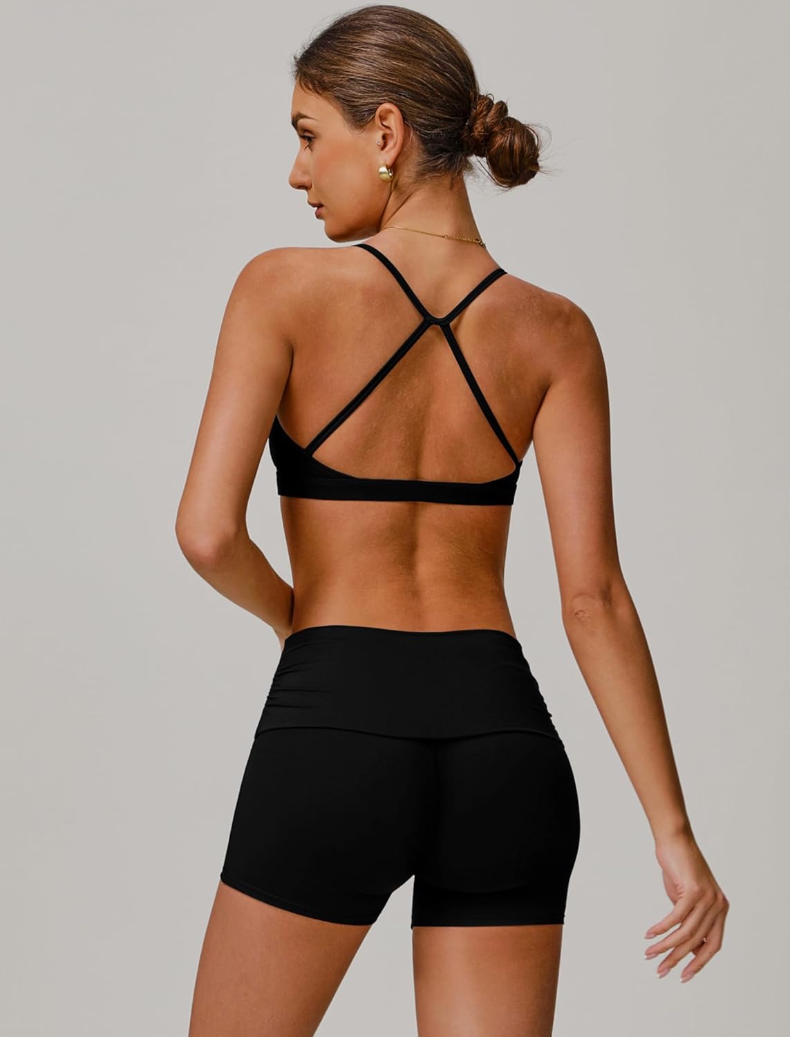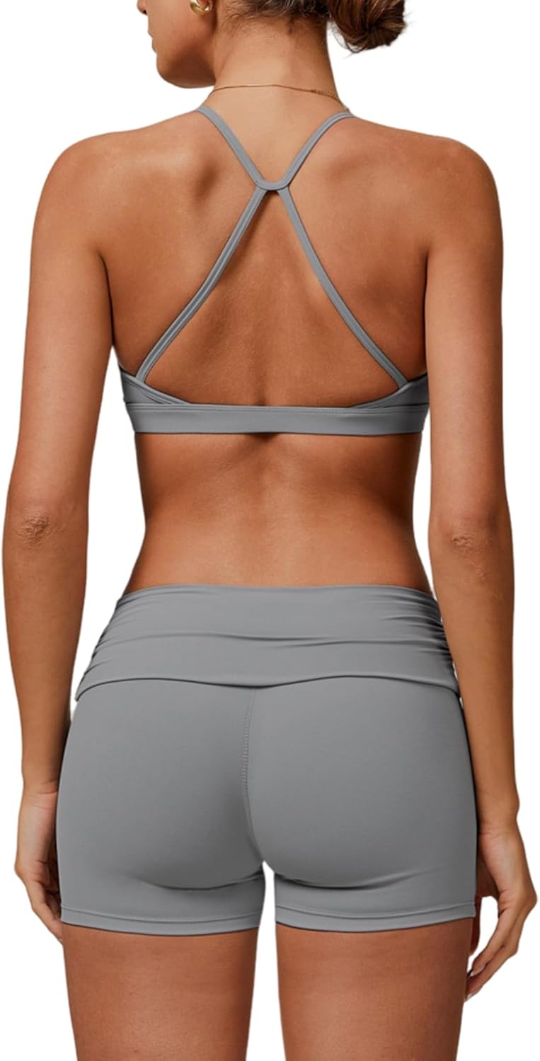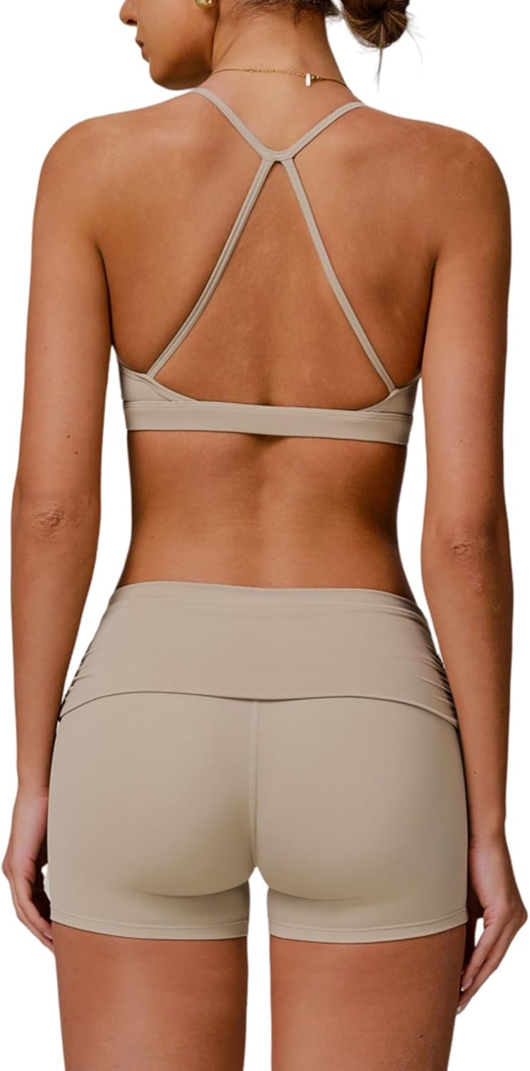 - Cross Back Sports Bras: Two piece workout sets for women, womens workout sets, 2 piece workout sets for women, gym sets, compression yoga top, fixed cross back, can stay in place by every move whatever you bend, stretch or jump, widen hemline, can effectively control tummy, emovable bra pads enhance up, convenient to adjust, replace or wash. Push up your chest and hug your curves in the right curves