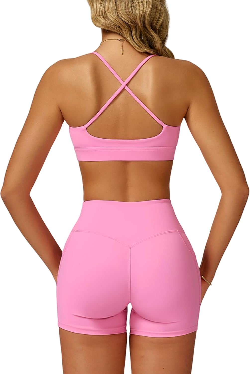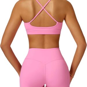 QBGJTD Women Two Piece Workout Sets Support Ruched Cross Back Sports Bras Matching Booty Lifting Shorts Gym Yoga Outfits