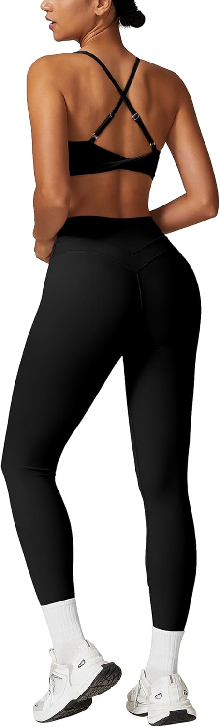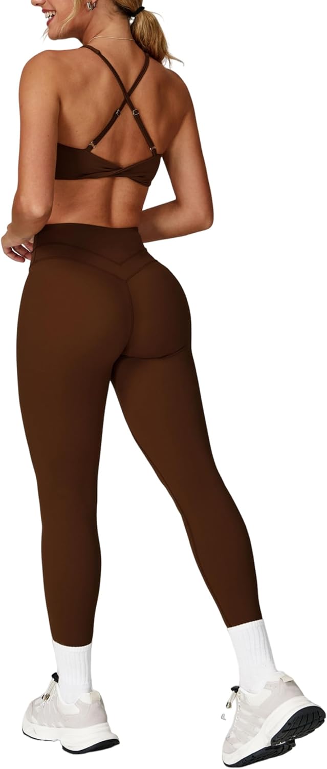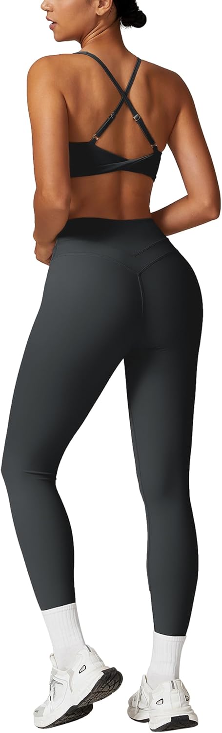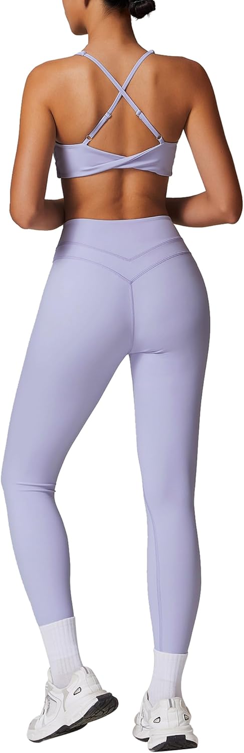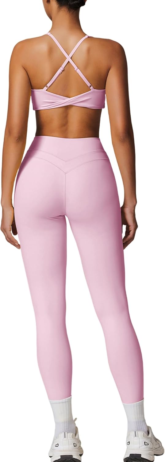 QBGJTD Womens Workout Sets Adjustable Straps Sports Bras and High Waist Leggings Sets Pilates 2 Piece Outfits for Women