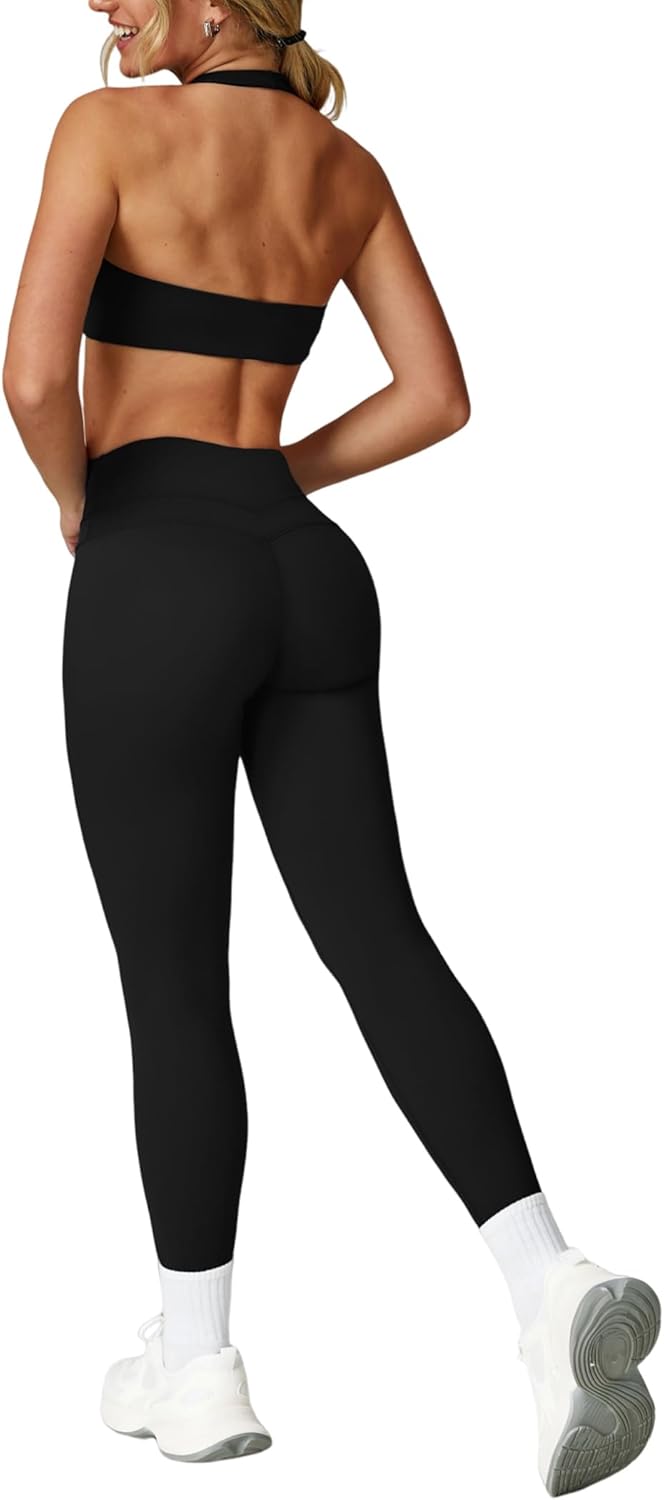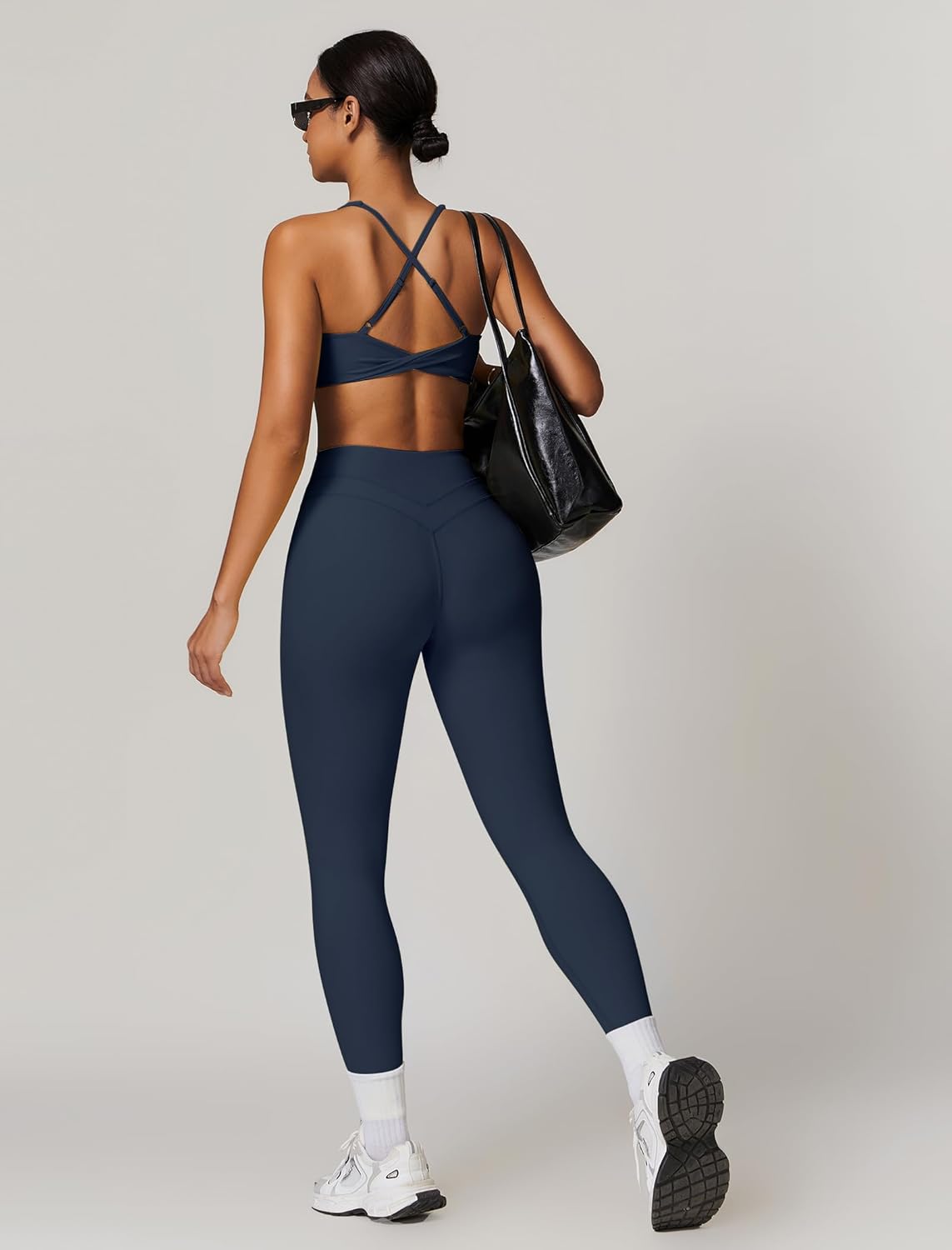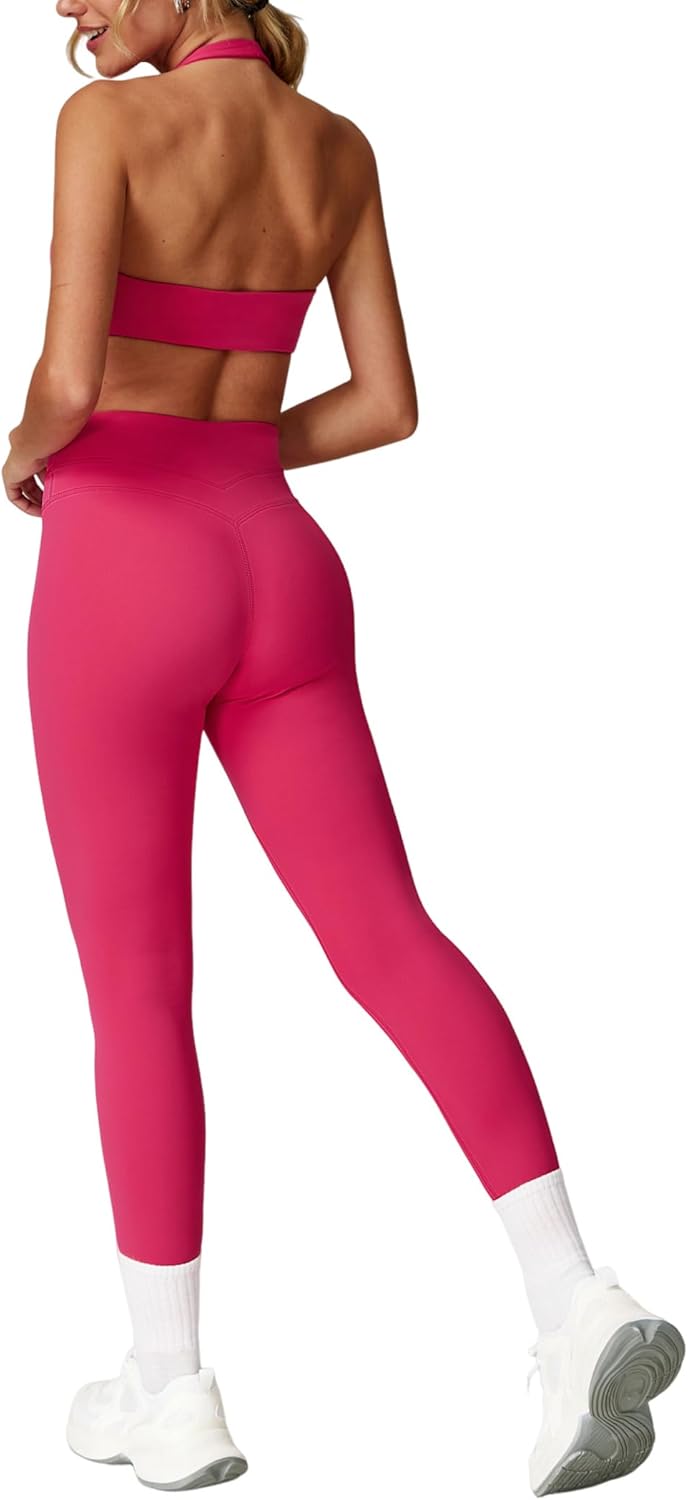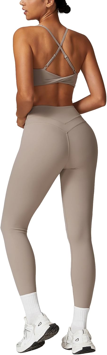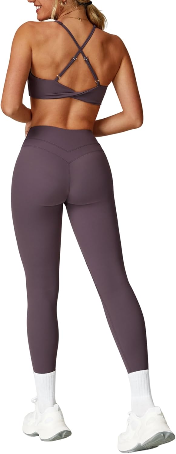 QBGJTD Womens Workout Sets Adjustable Straps Sports Bras and High Waist Leggings Sets Pilates 2 Piece Outfits for Women