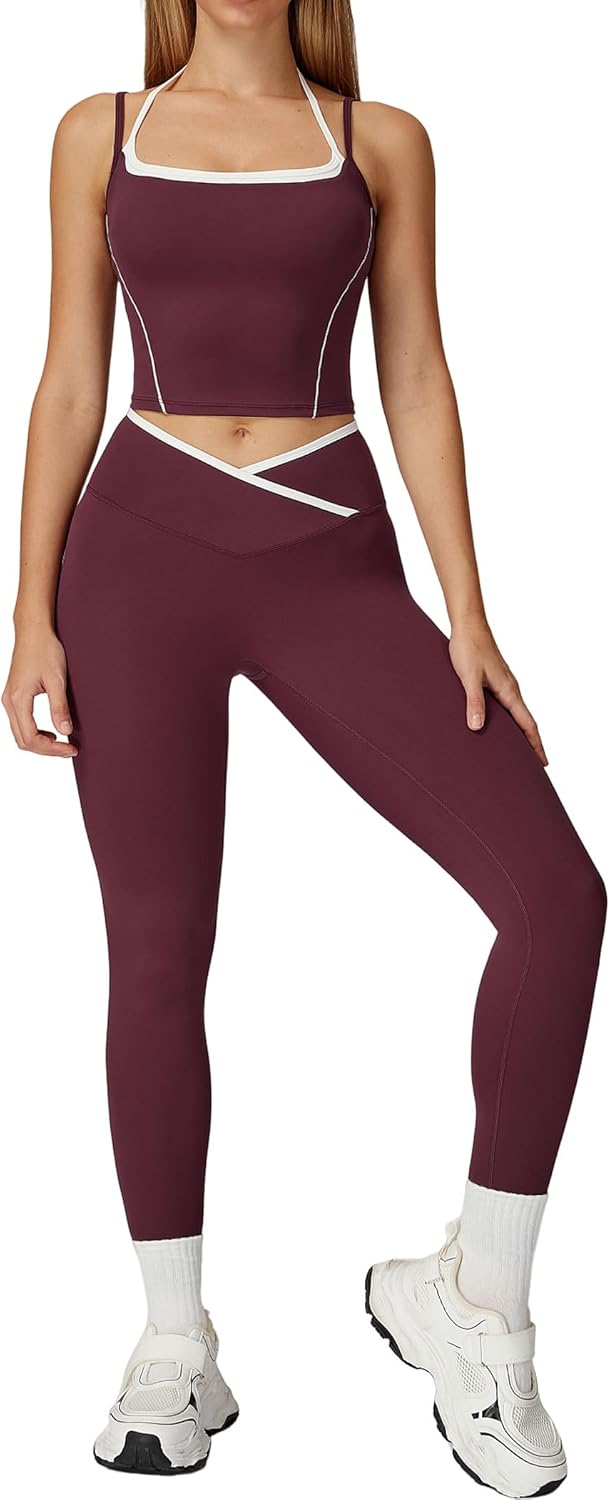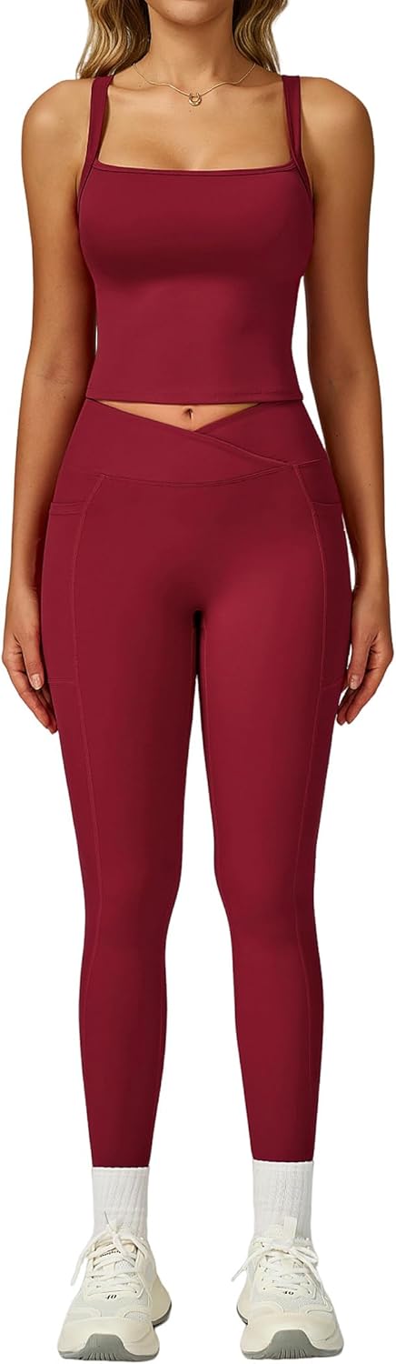QBGJTD Womens Workout Sets Two Piece Spaghetti Straps Tank Top Matching High Waist Leggings Gym Work Out Outfits with Pockets