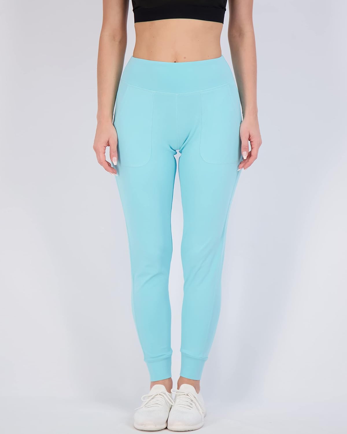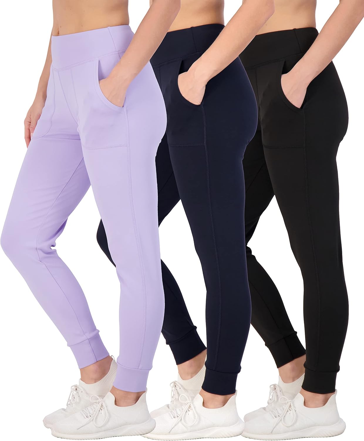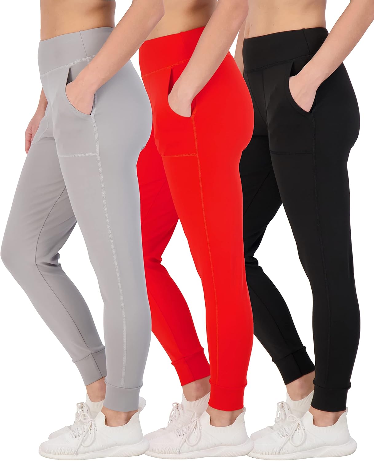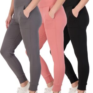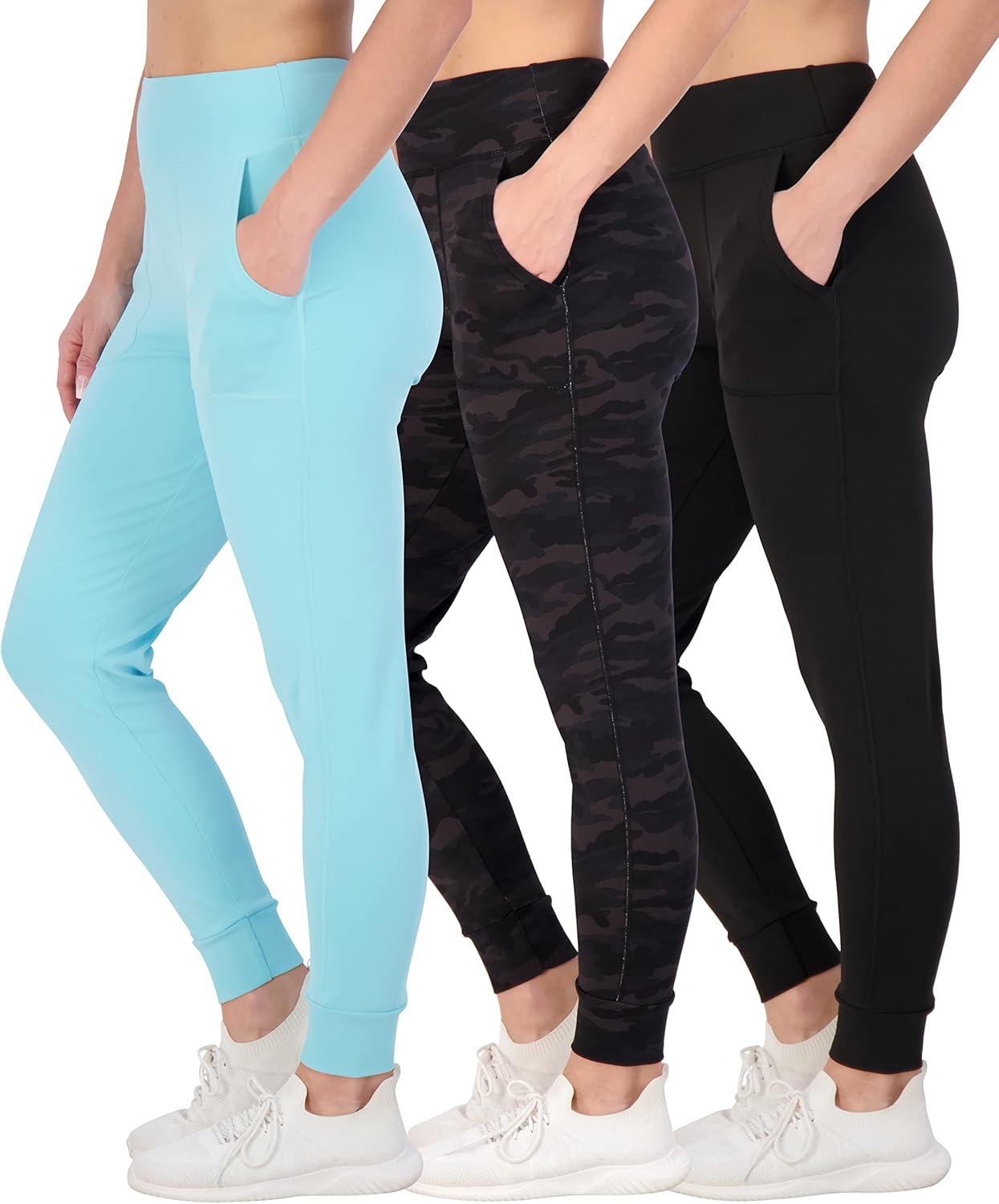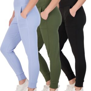 Real Essentials 3 Pack: Women’s Joggers with Pockets – High Waist Workout Yoga Tapered Athletic Leggings (Available in Plus)