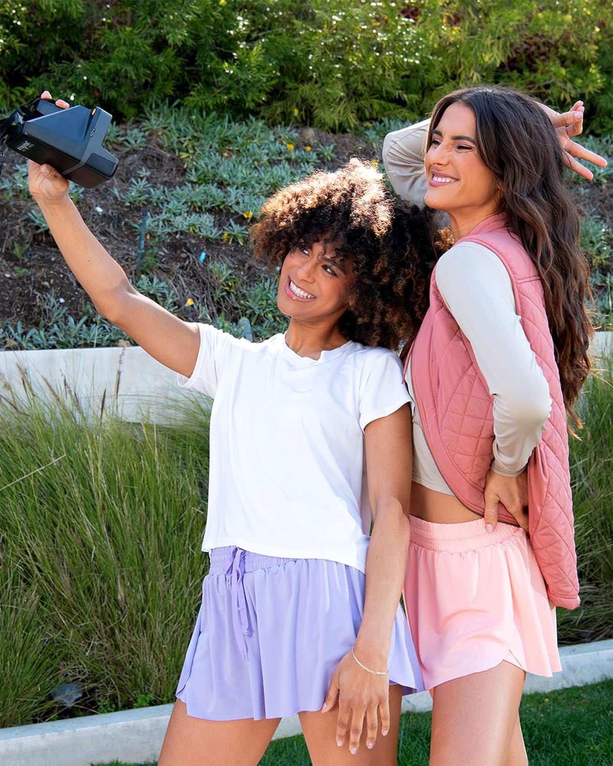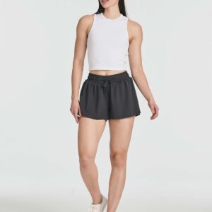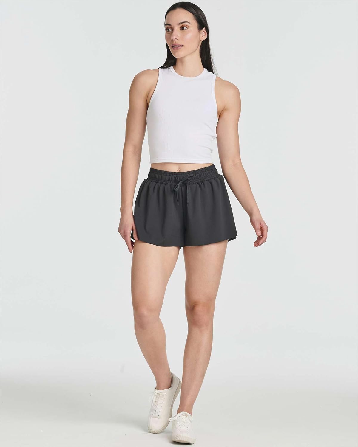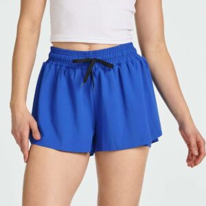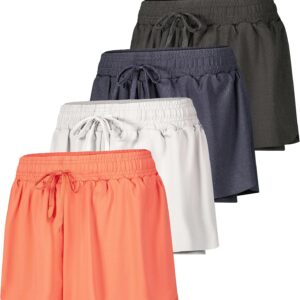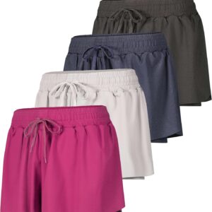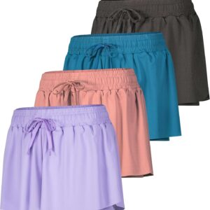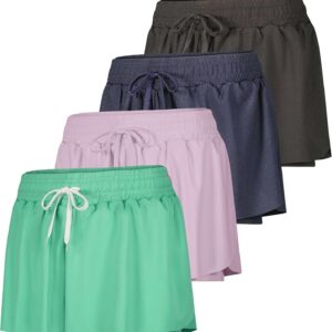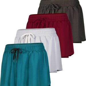 Real Essentials 4 Pack:Womens Flowy Dry Fit Running Short – Spandex Underneath Workout Summer Shorts (Available in Plus Size)
