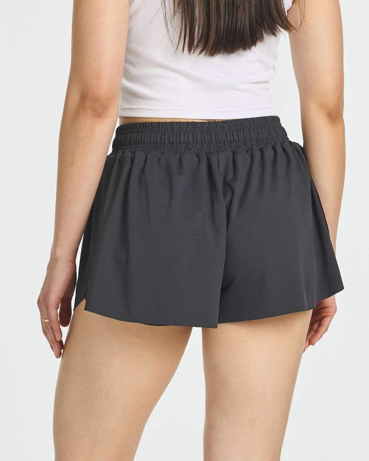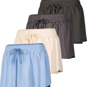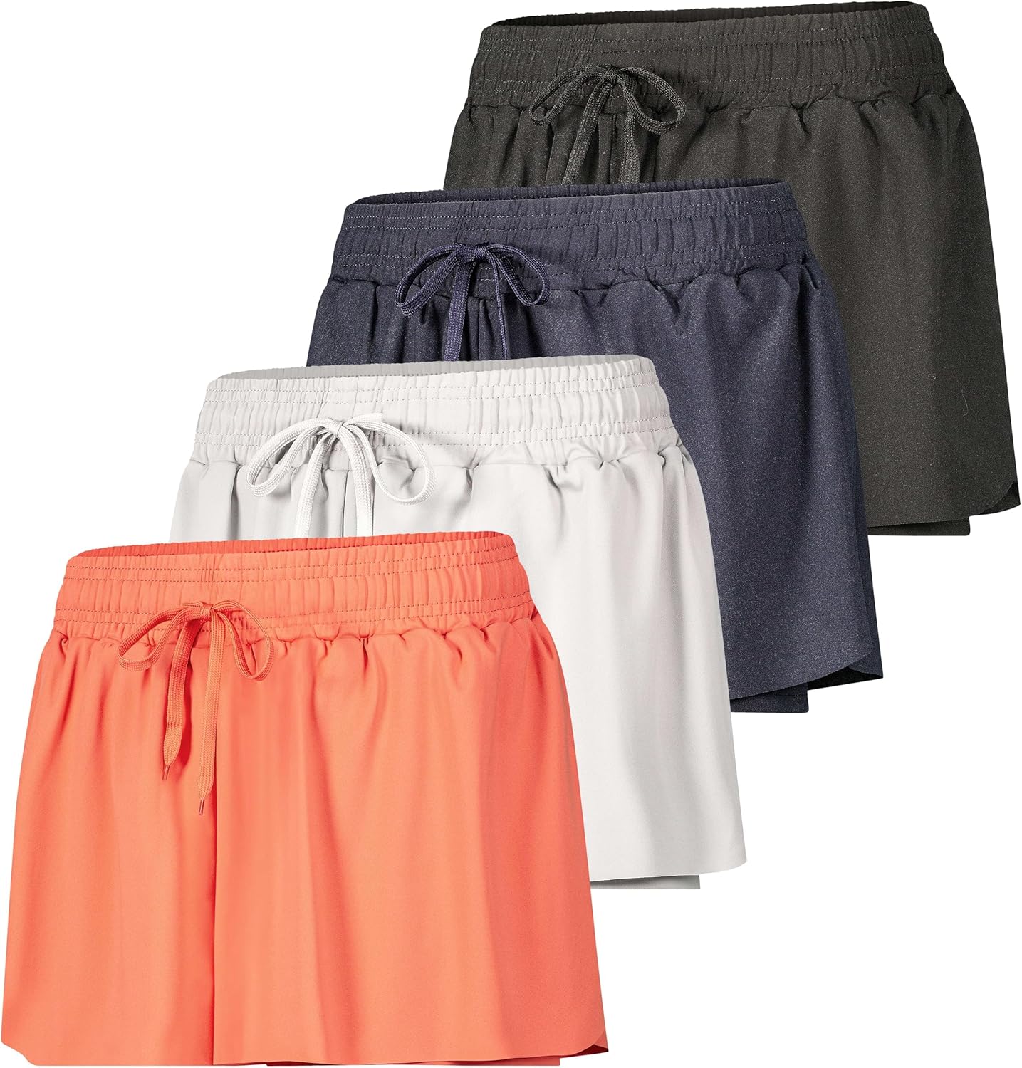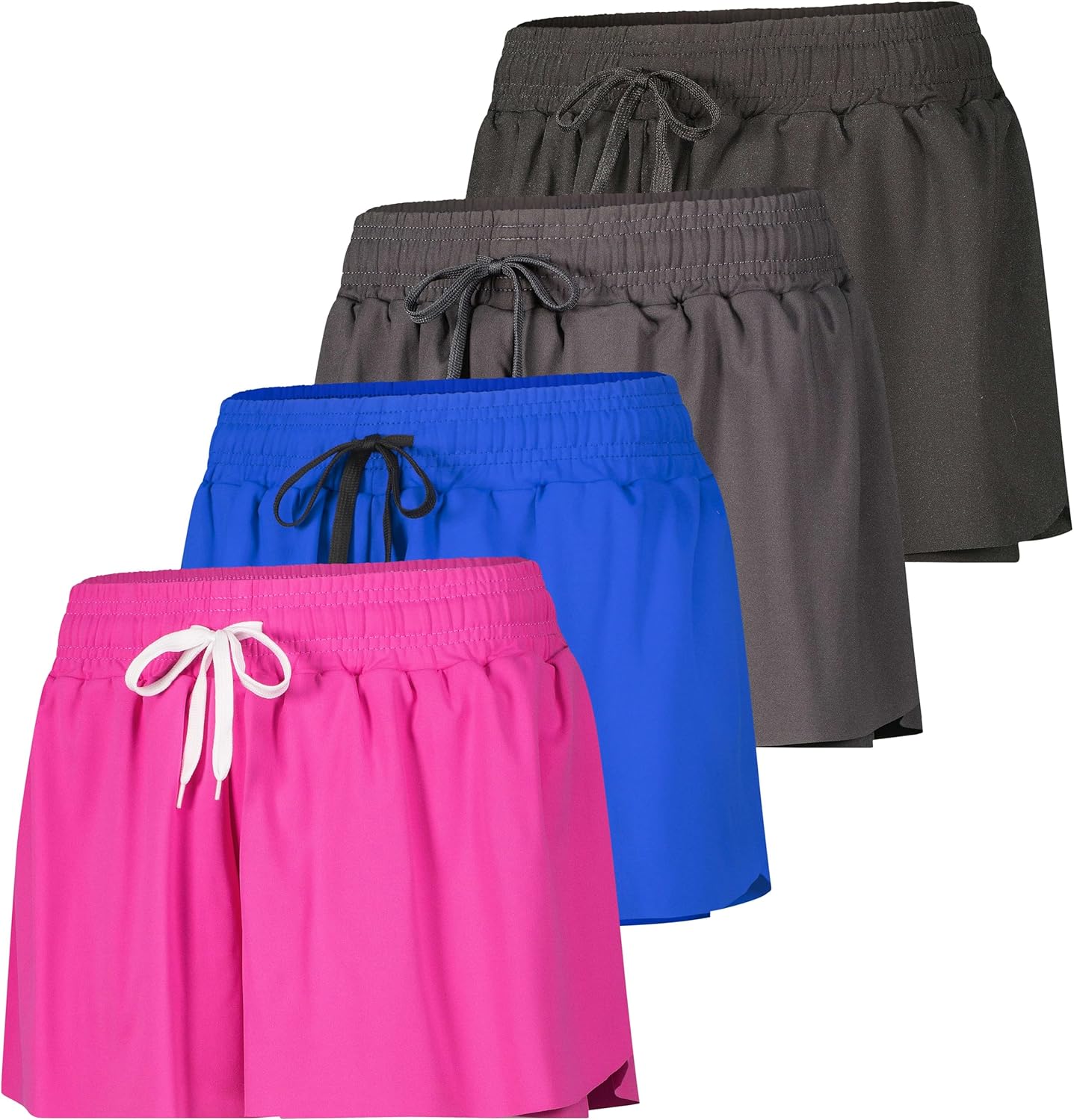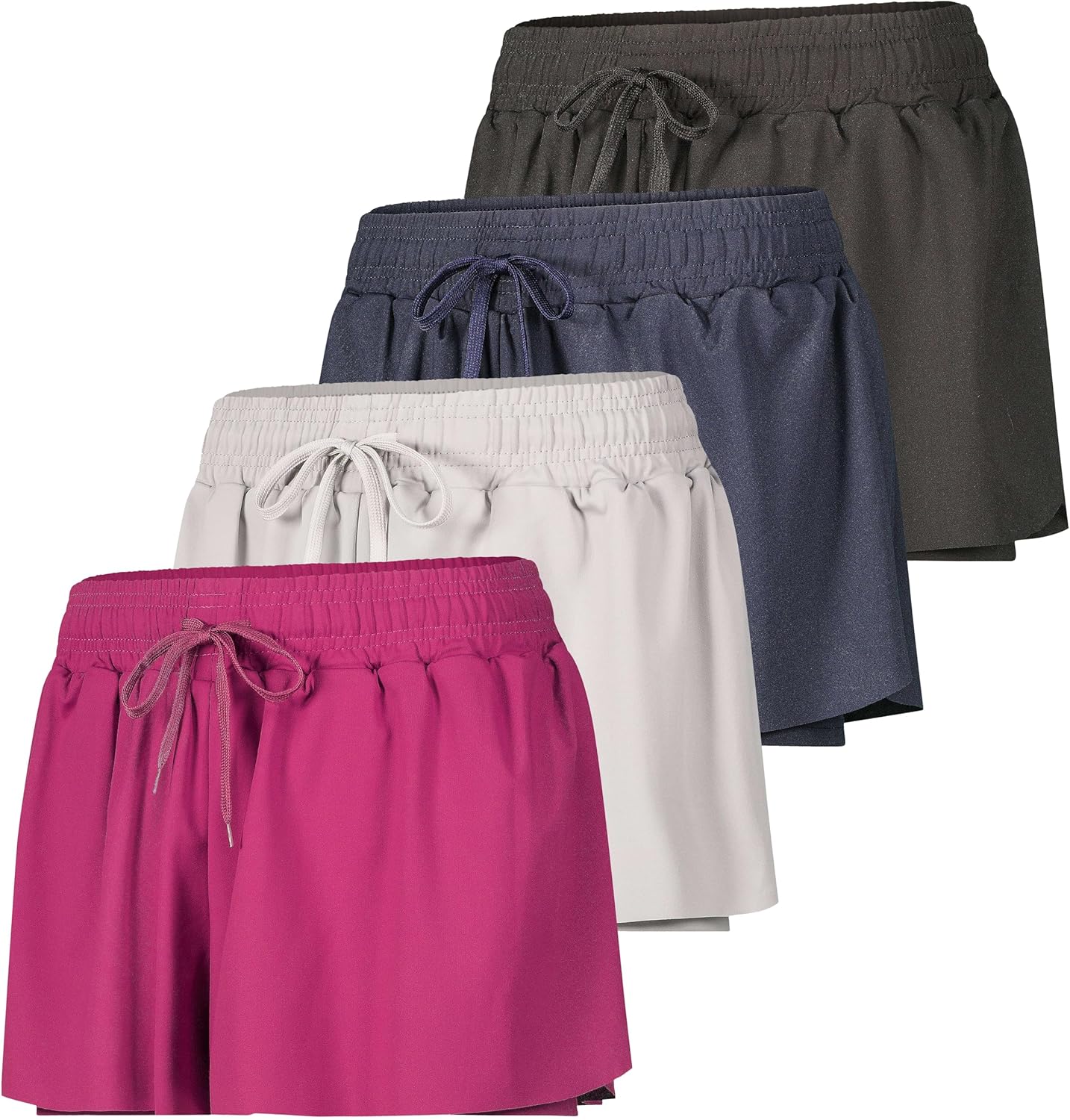 Real Essentials 4 Pack:Womens Flowy Dry Fit Running Short - Spandex Underneath Workout Summer Shorts (Available in Plus Size)