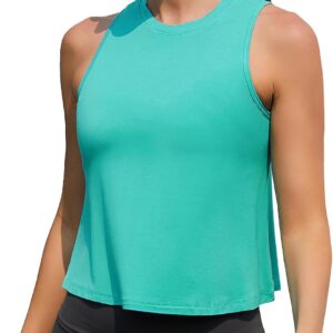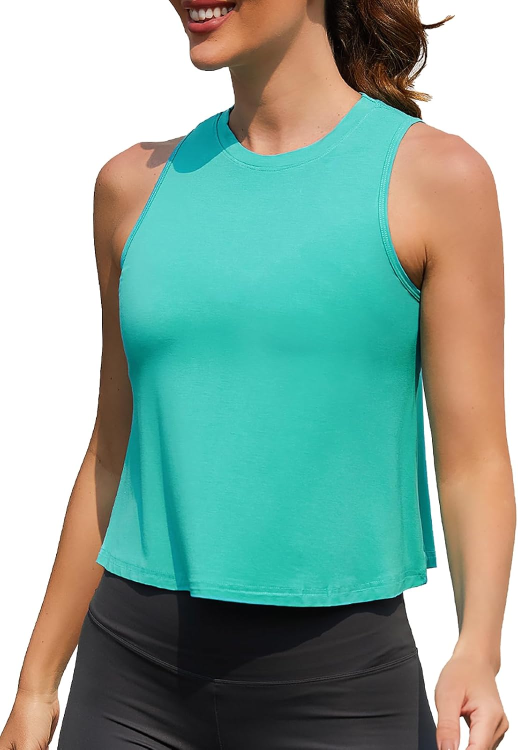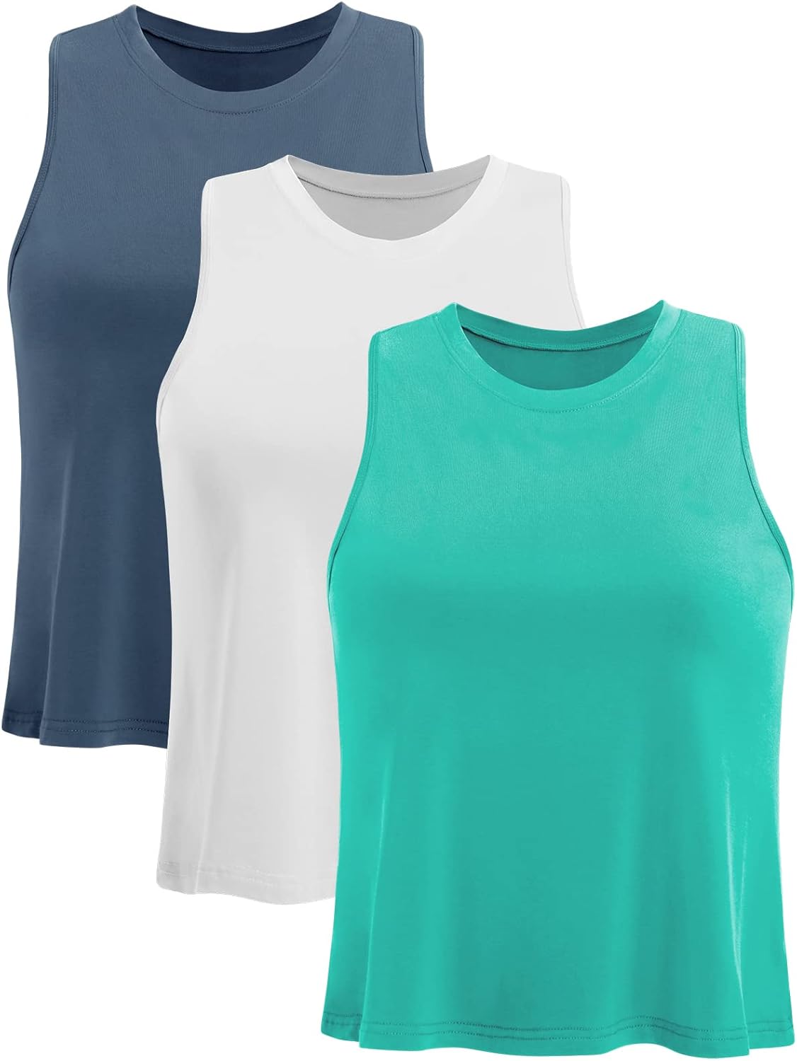 Ridshy Crop Tops for Women Workout Athletic Tank Tops Flowy Cropped Tank Tops Yoga Sleeveless Muscle Shirts 3 Pack