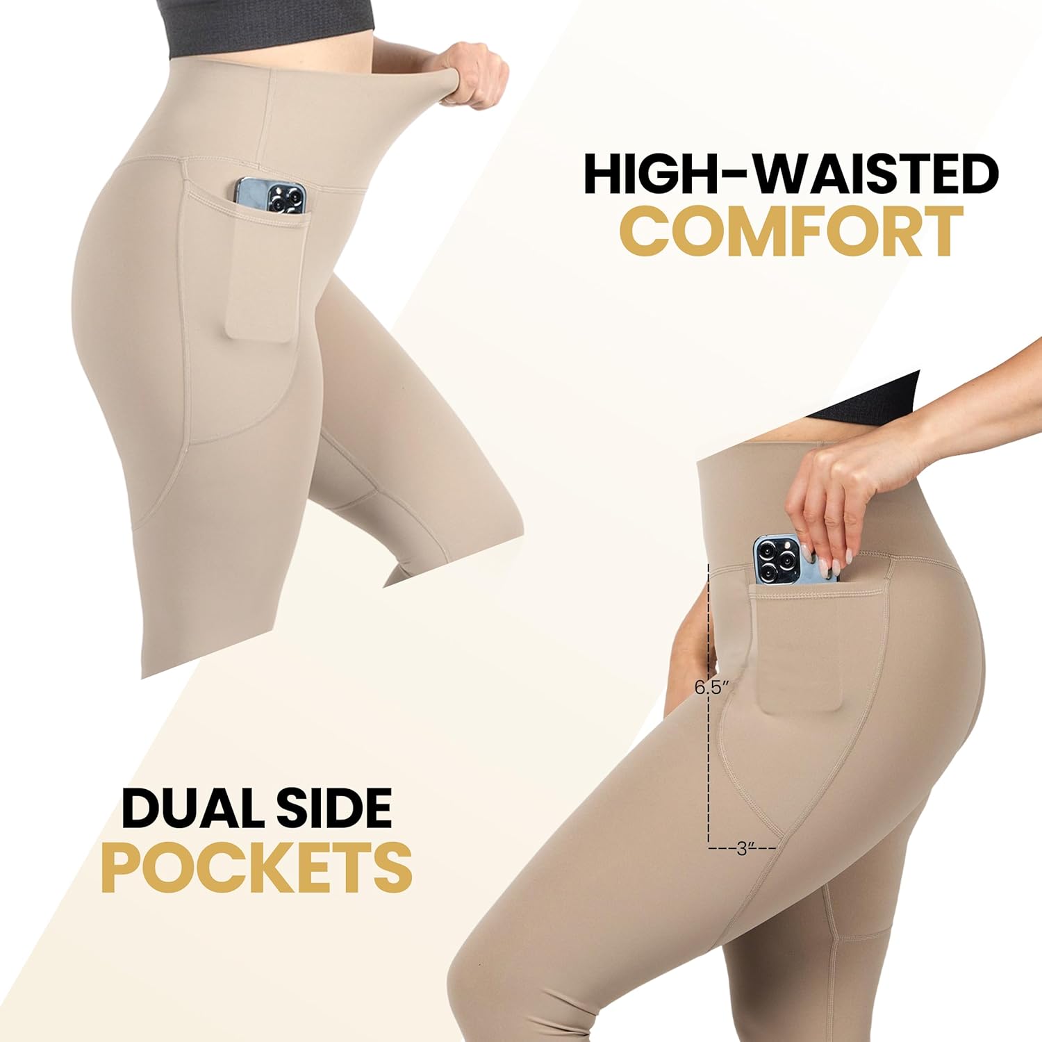 SereneFit Yoga Pants with Pockets for Women Tummy Control High Waisted Buttery Soft Gym Leggings Workout Clothes for Women