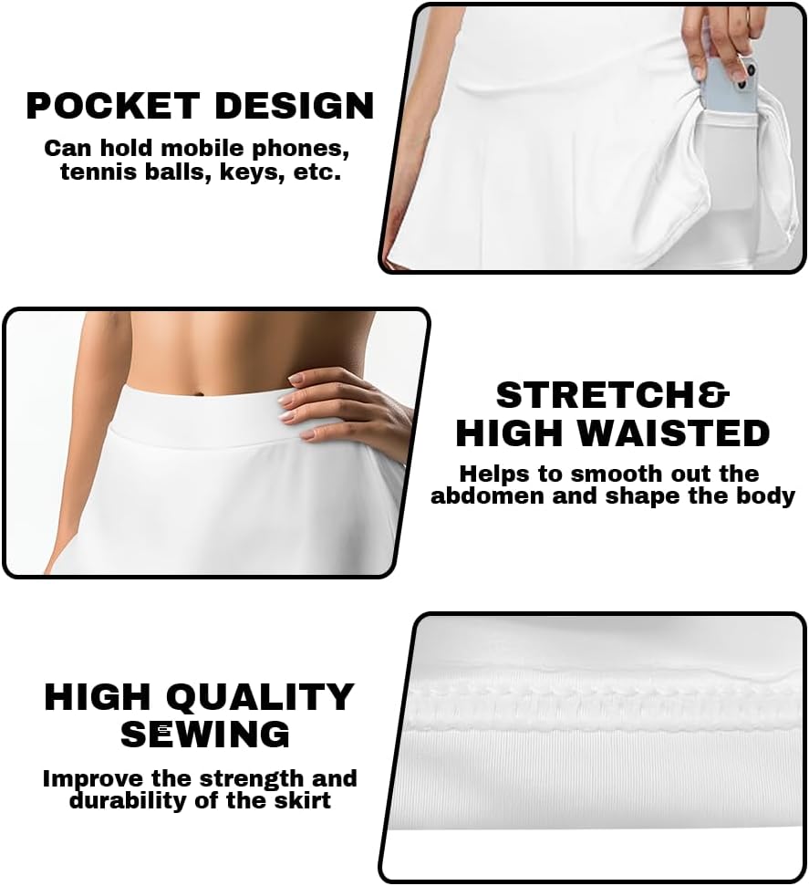 Suobstales Golf Skirts for Women Tennis Skirt with Pocket High Waisted Running Skirts Casual Athletic Skorts Built-in Shorts
