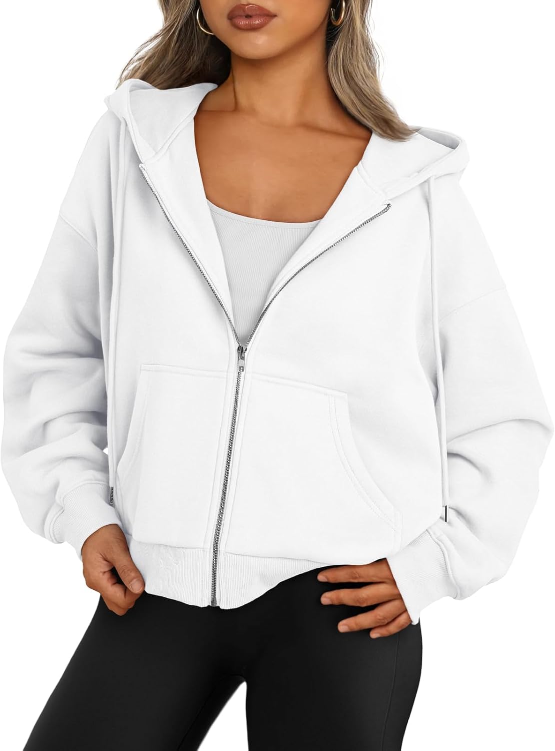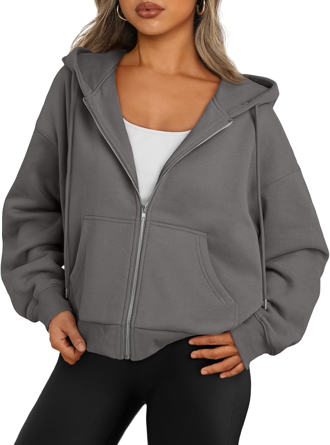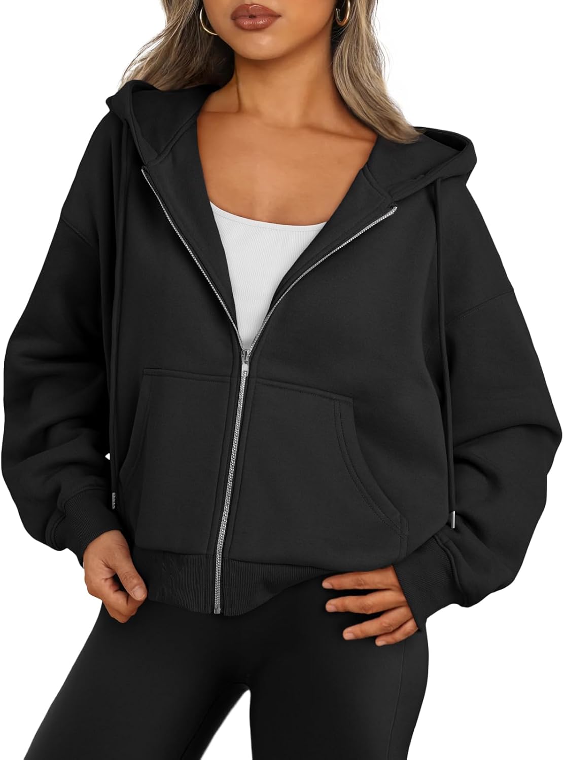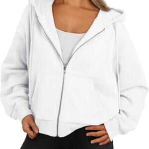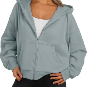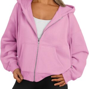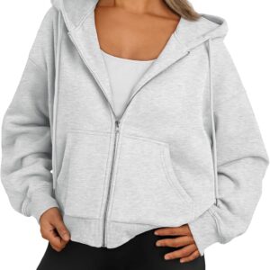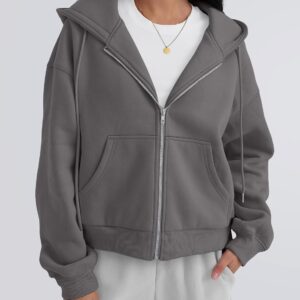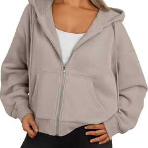 Trendy Queen Zip Up Hoodies For Women Cropped Sweatshirts Fall Fashion Outfits 2025 Y2k Fleece Teen Girls Clothes