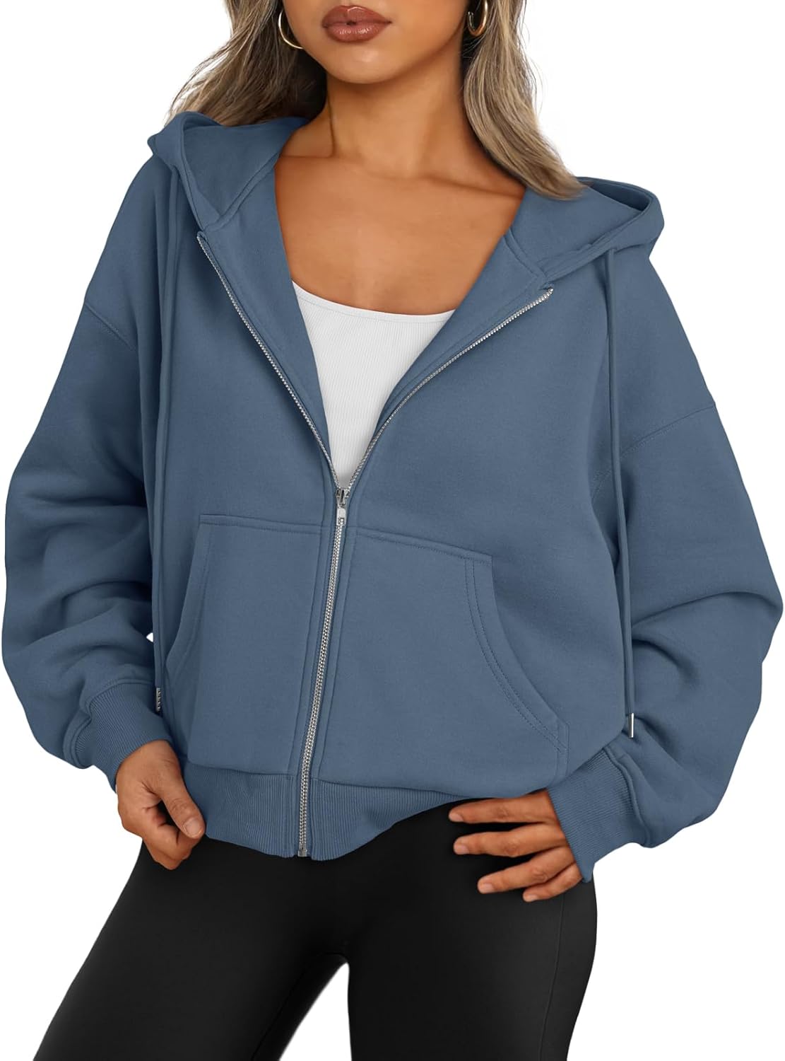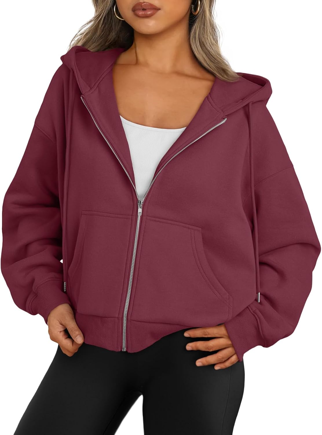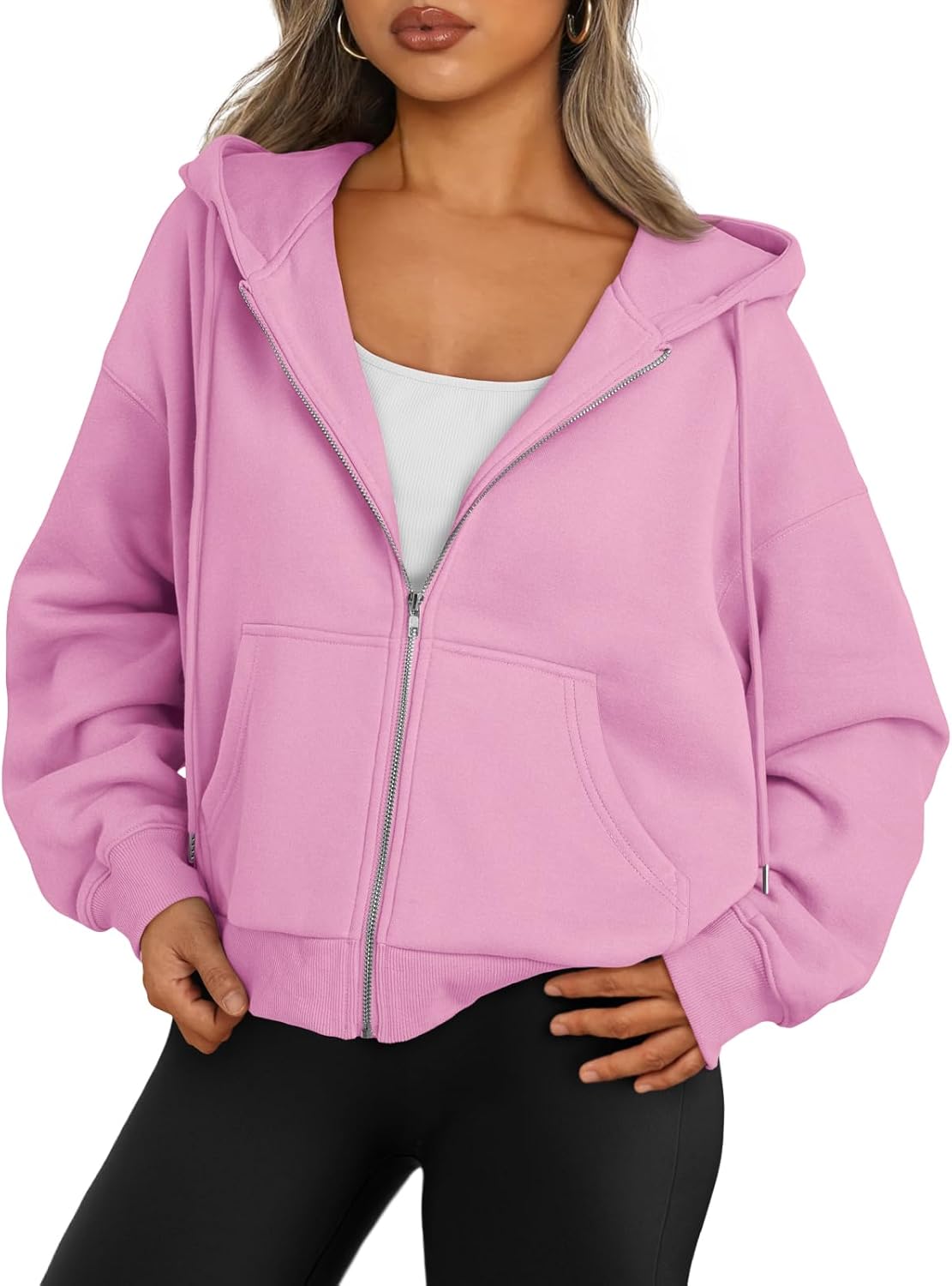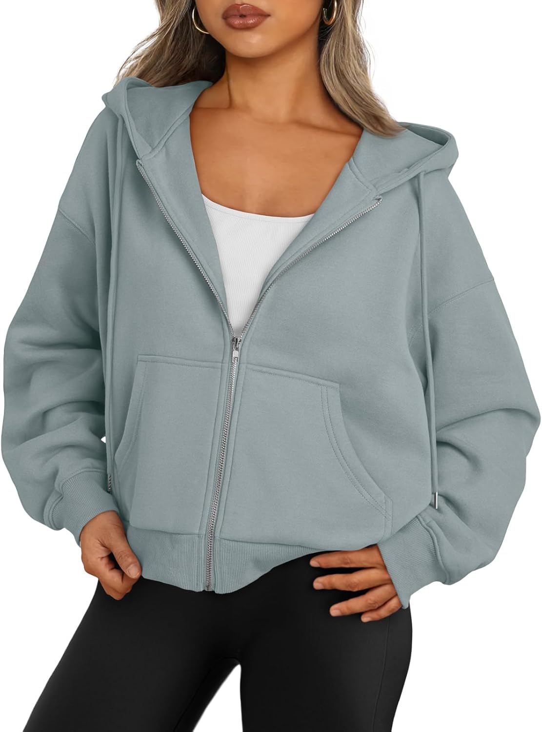 Trendy Queen Zip Up Hoodies For Women Cropped Sweatshirts Fall Fashion Outfits 2025 Y2k Fleece Teen Girls Clothes
