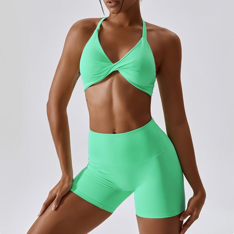 Yoga Solid Color Breathable Quick Dry Sportswear Super Stretch Workout Gym Suit Clothes Women Seamless Short Sleeve Top Waist Shorts Running Set”