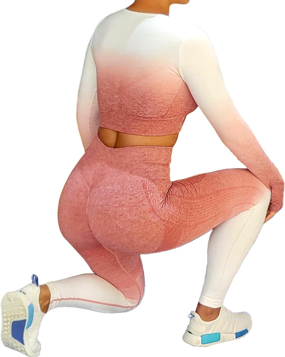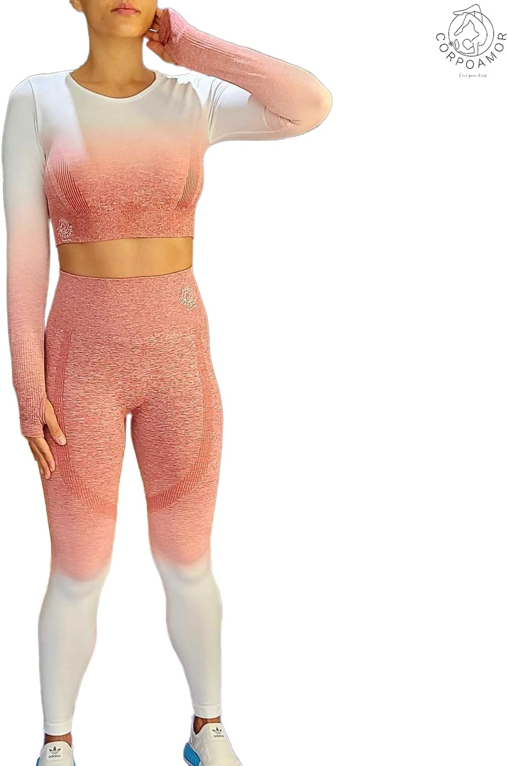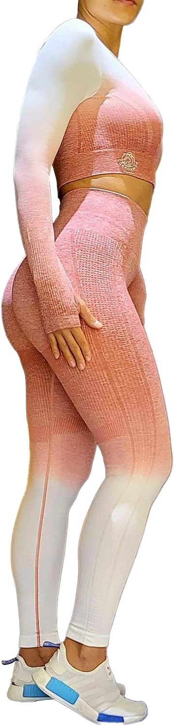 CORPOAMOR is a brand that focuses on providing workout clothing for women. This 2 Piece Set is a great choice for those who are looking for comfortable and stylish workout gear that can also be worn on a comfy day out. The set includes a long sleeve top with thumbholes and comfortable crew neck as well as leggings with tummy control and butt lift. all made from flexible and ribbed breathable fabric in an ombre gradient finish