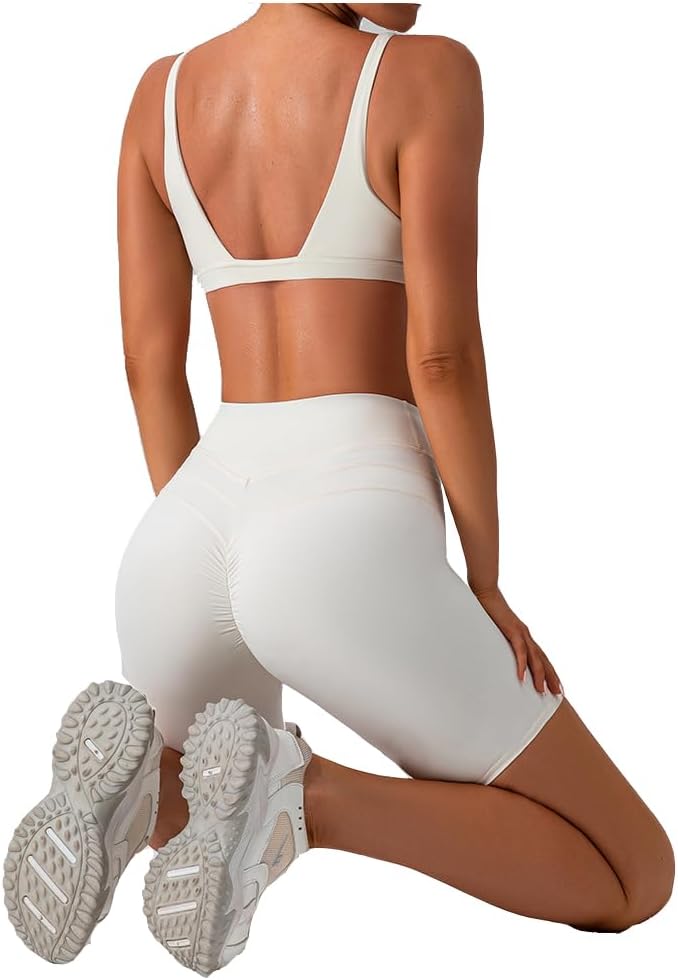 This stylish sports suit is perfect for active women. It includes a stylish V-neck sports bra that provides great support, as well as a high waisted cycling shorts. Soft and elastic fabric ensures maximum comfort and flexibility during exercise, whether it’s yoga, running, or going to the gym. We have three colors for you to choose from, making it a complete and versatile sportswear set.