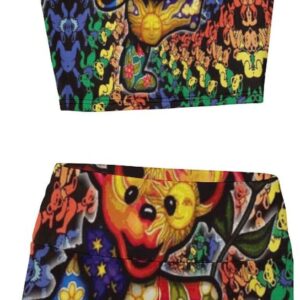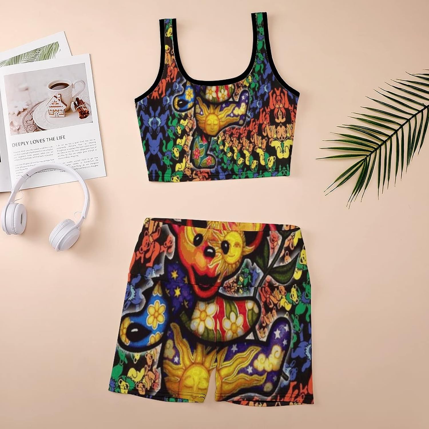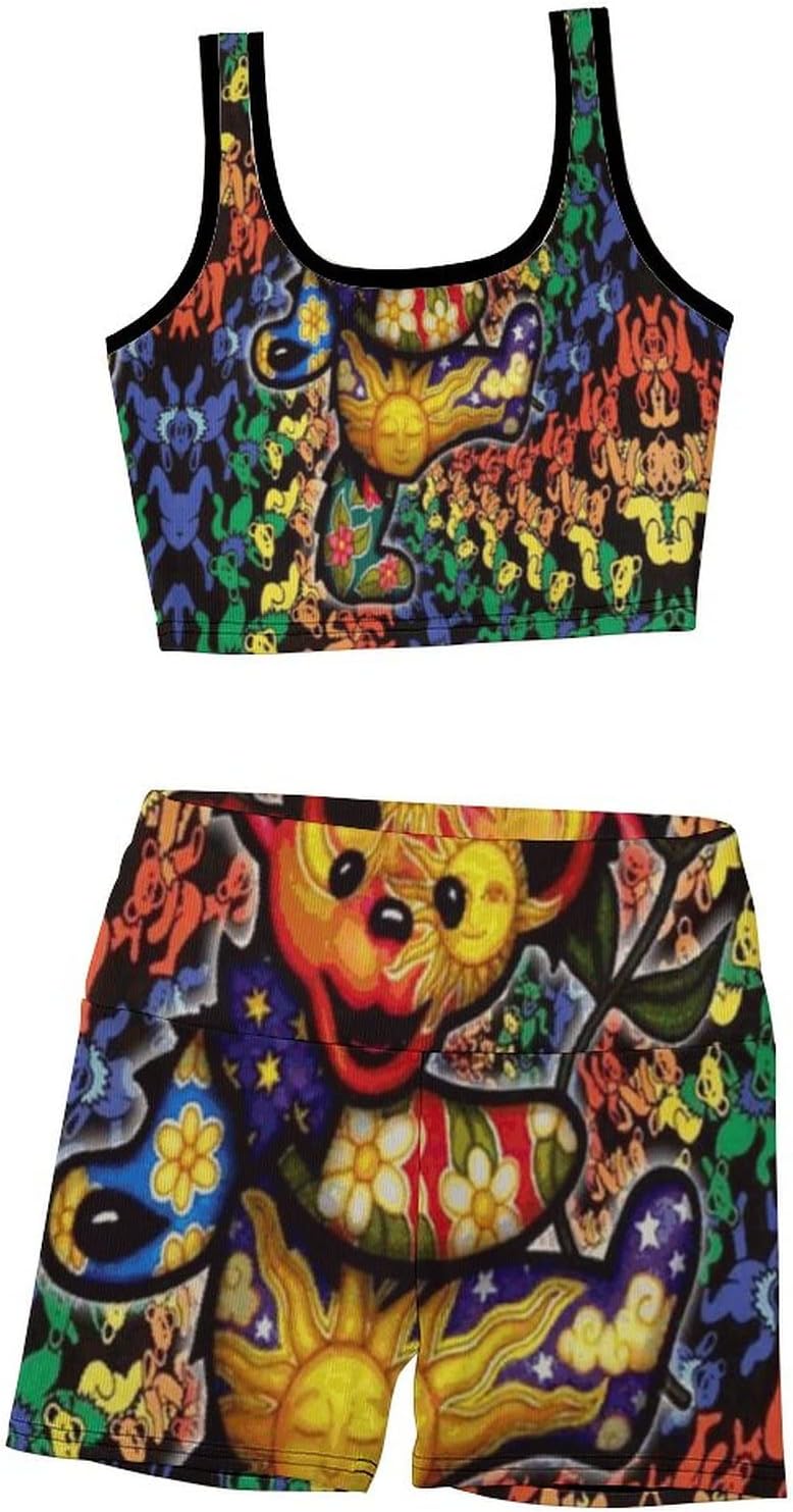 Workout Yoga Outfits for Women 2 Piece Ribbed Thread Vest Set High Waist Sports Exercise Novelty Funny Hippie
